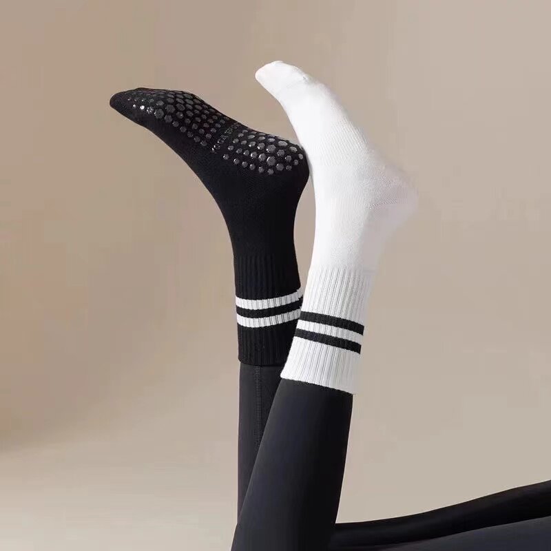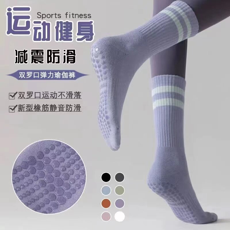瑜伽袜子女中筒健身舞蹈普拉提女袜专业防滑运动袜纯棉成人地板袜