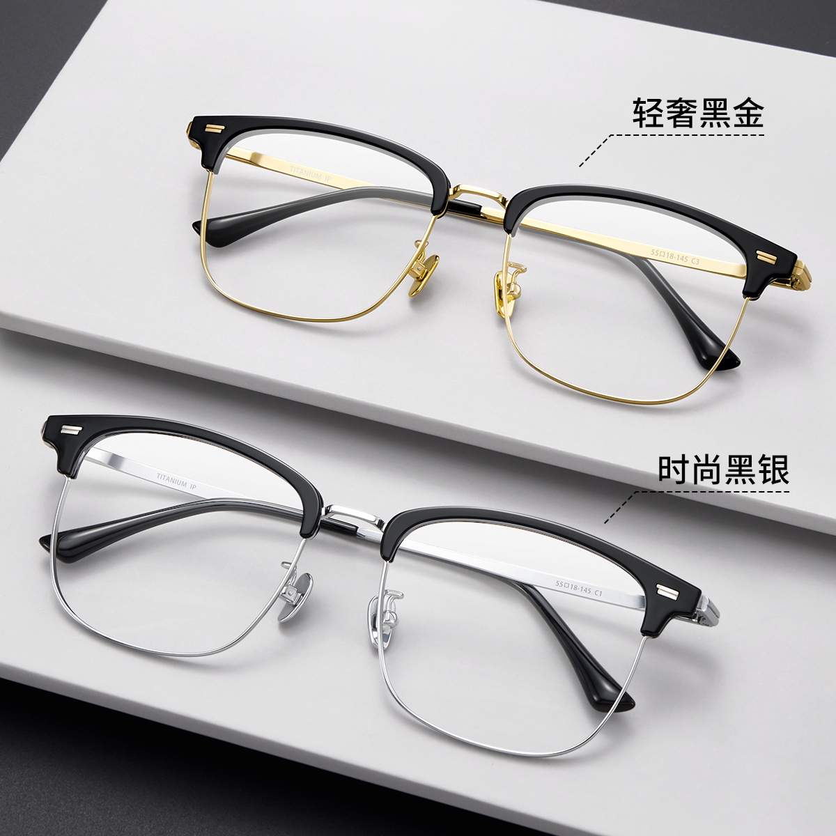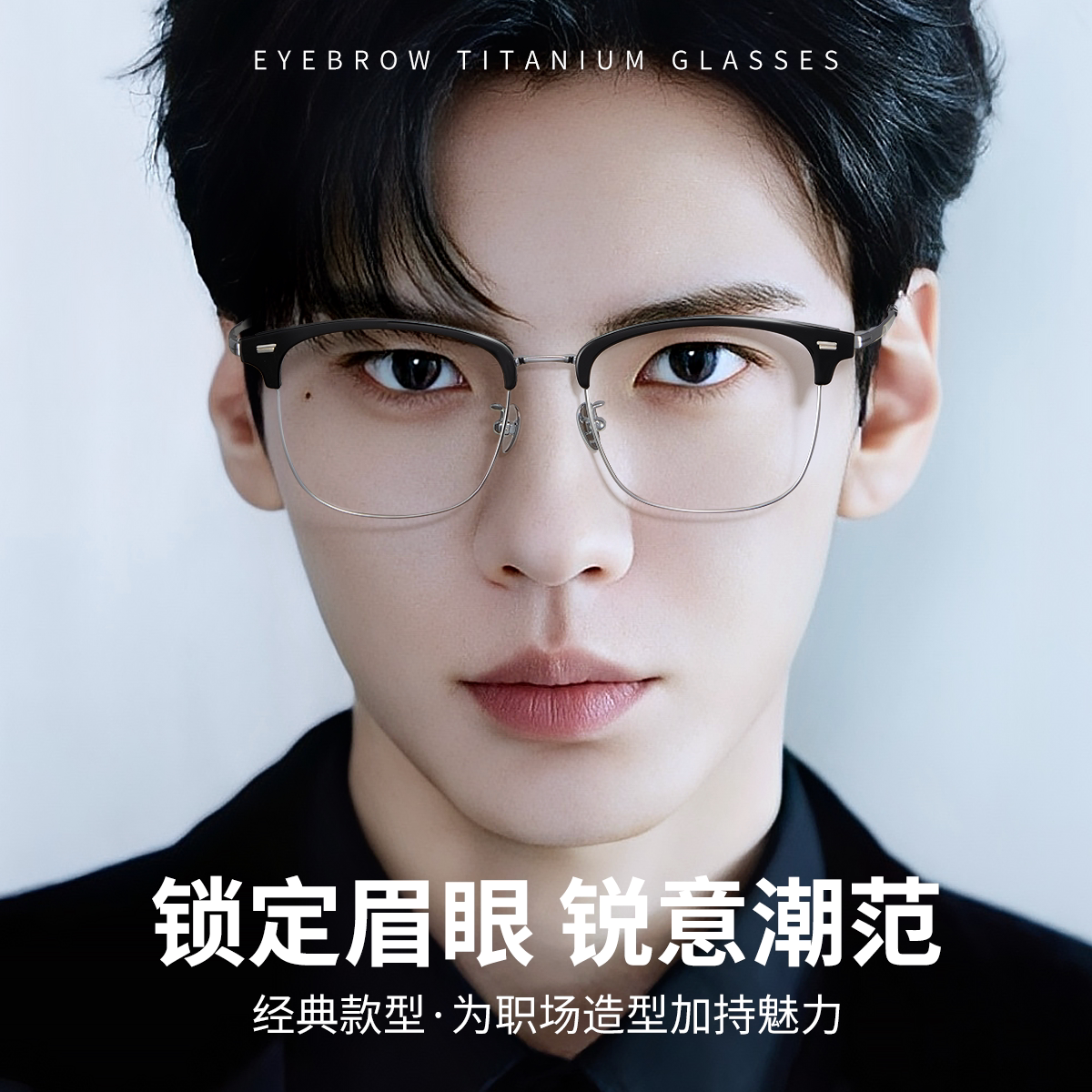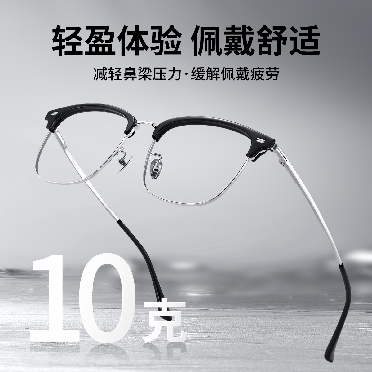蔡司近视镜片男眉线纯钛超轻眼镜框定制度数可配变色防蓝光972390