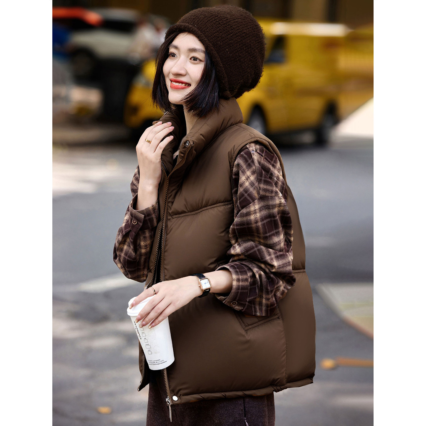 鸭鸭羽绒服马甲女短款轻薄2025秋冬季立领爆款韩版蓬松鸭绒外套A