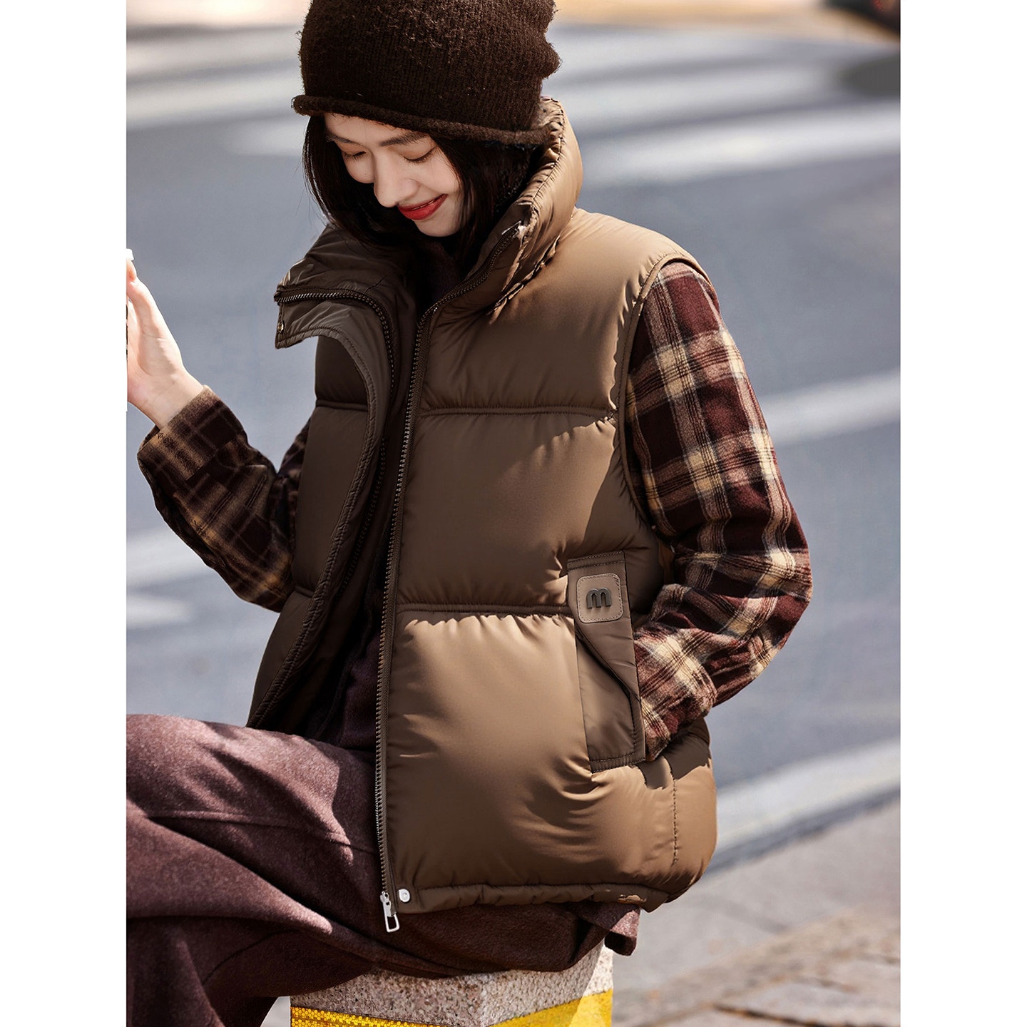 鸭鸭羽绒服马甲女士2025秋冬短款立领休闲舒适宽松鸭绒上衣外套J