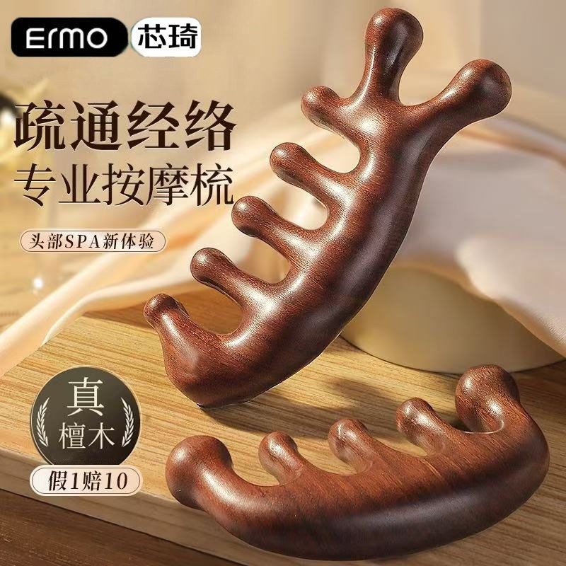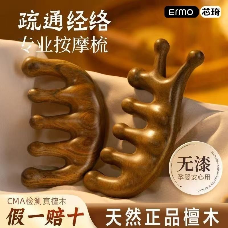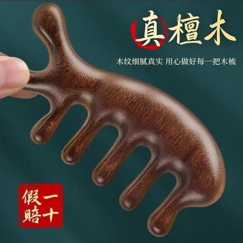 按摩梳檀木经络防静电穴位头部按摩通用五指按摩梳子头颈刮痧神器
