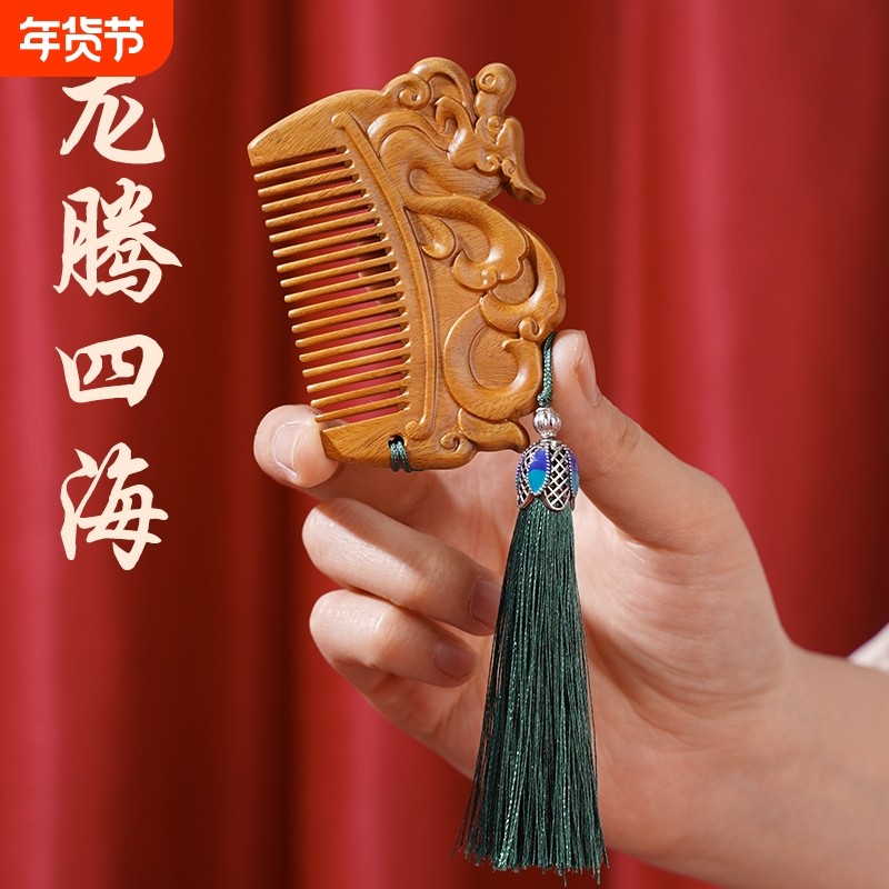 龙年木梳天然桃木梳子檀木梳百天周岁礼新款宝宝抓周儿童实木梳子