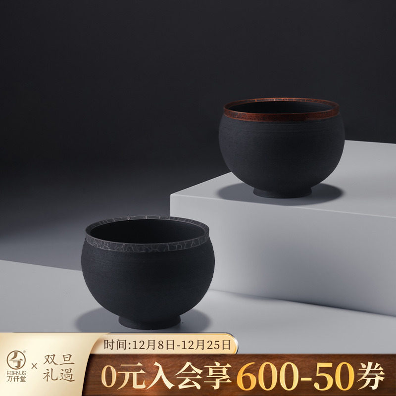 万仟堂高档黑陶茶杯品茗杯主人单杯个人专用陶瓷功夫茶杯万仟手作