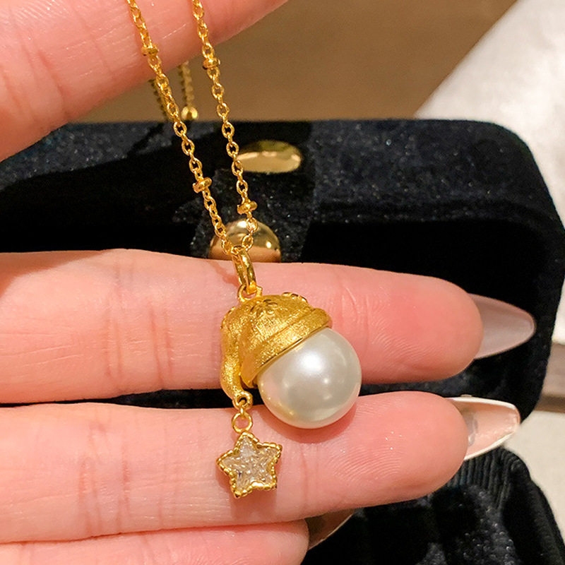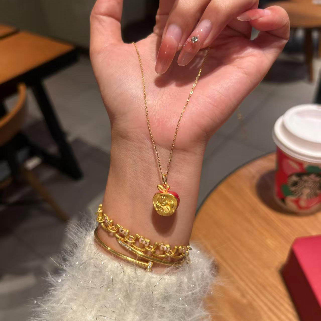新中式拉丝点钻苹果项链女新款吊坠平安夜圣诞节礼物送女友