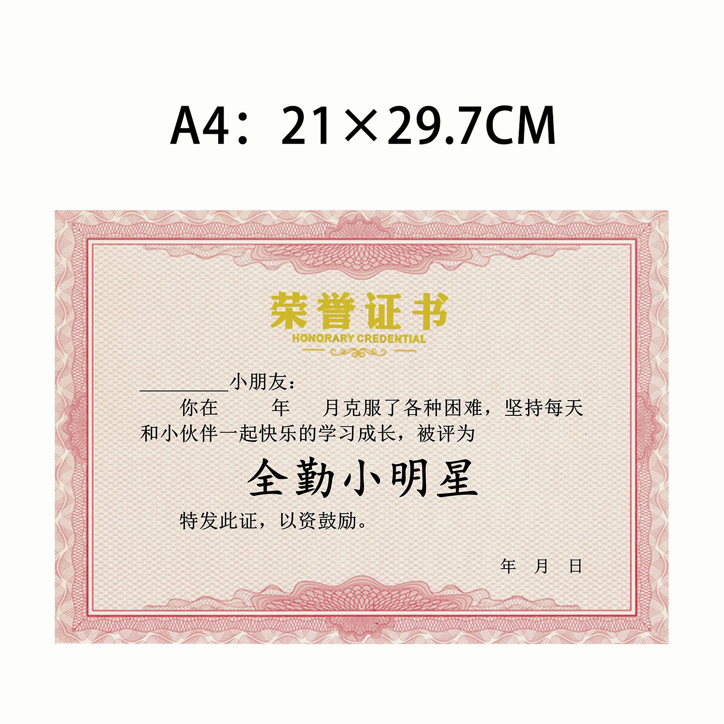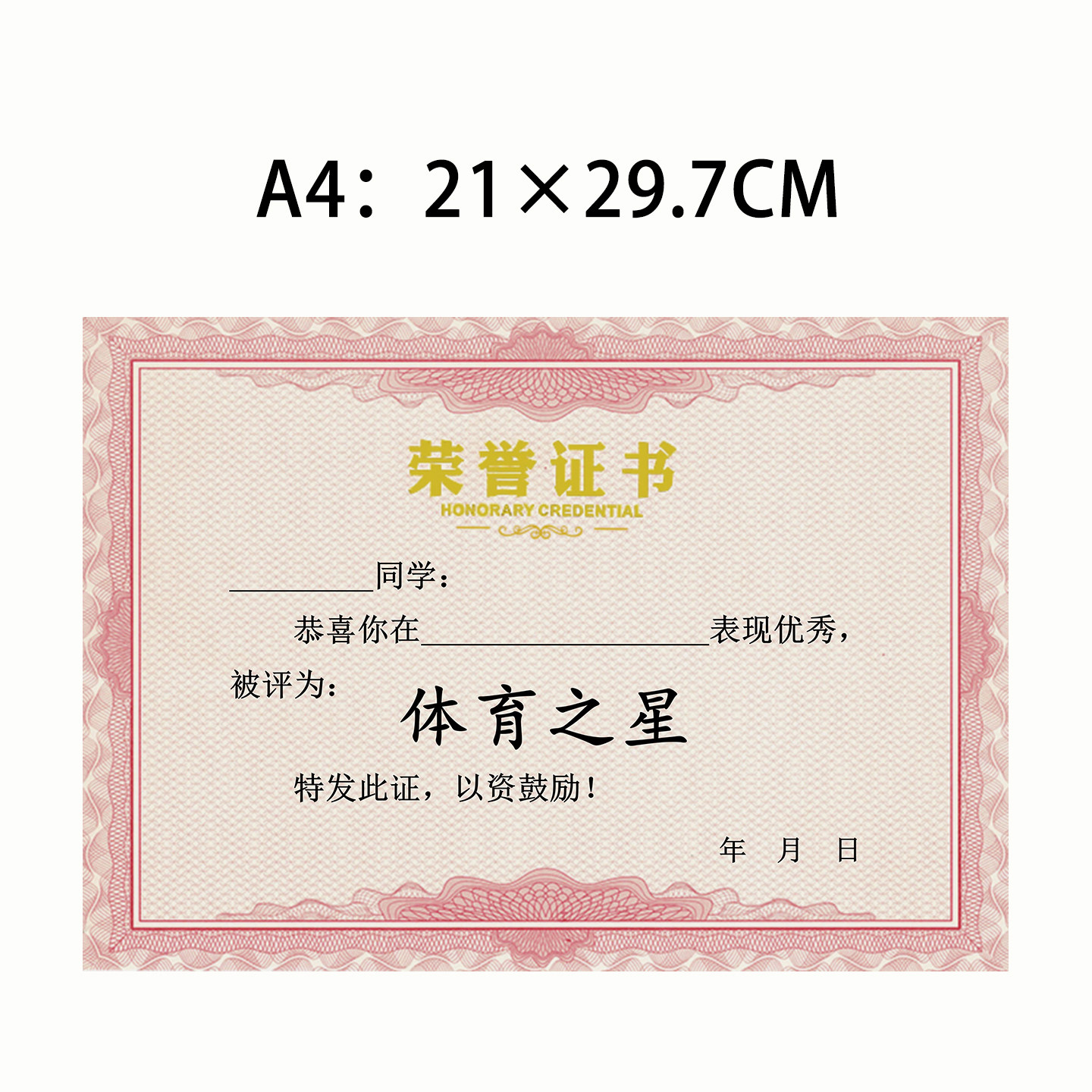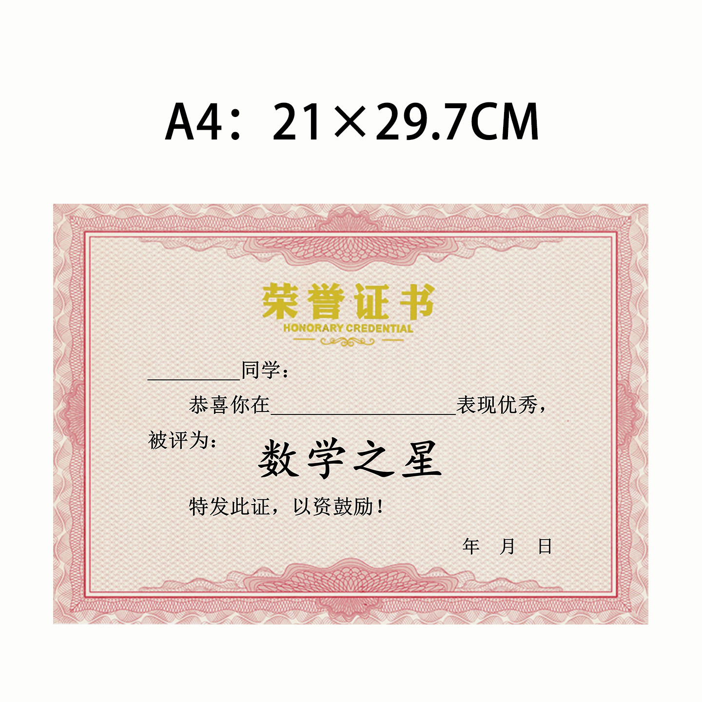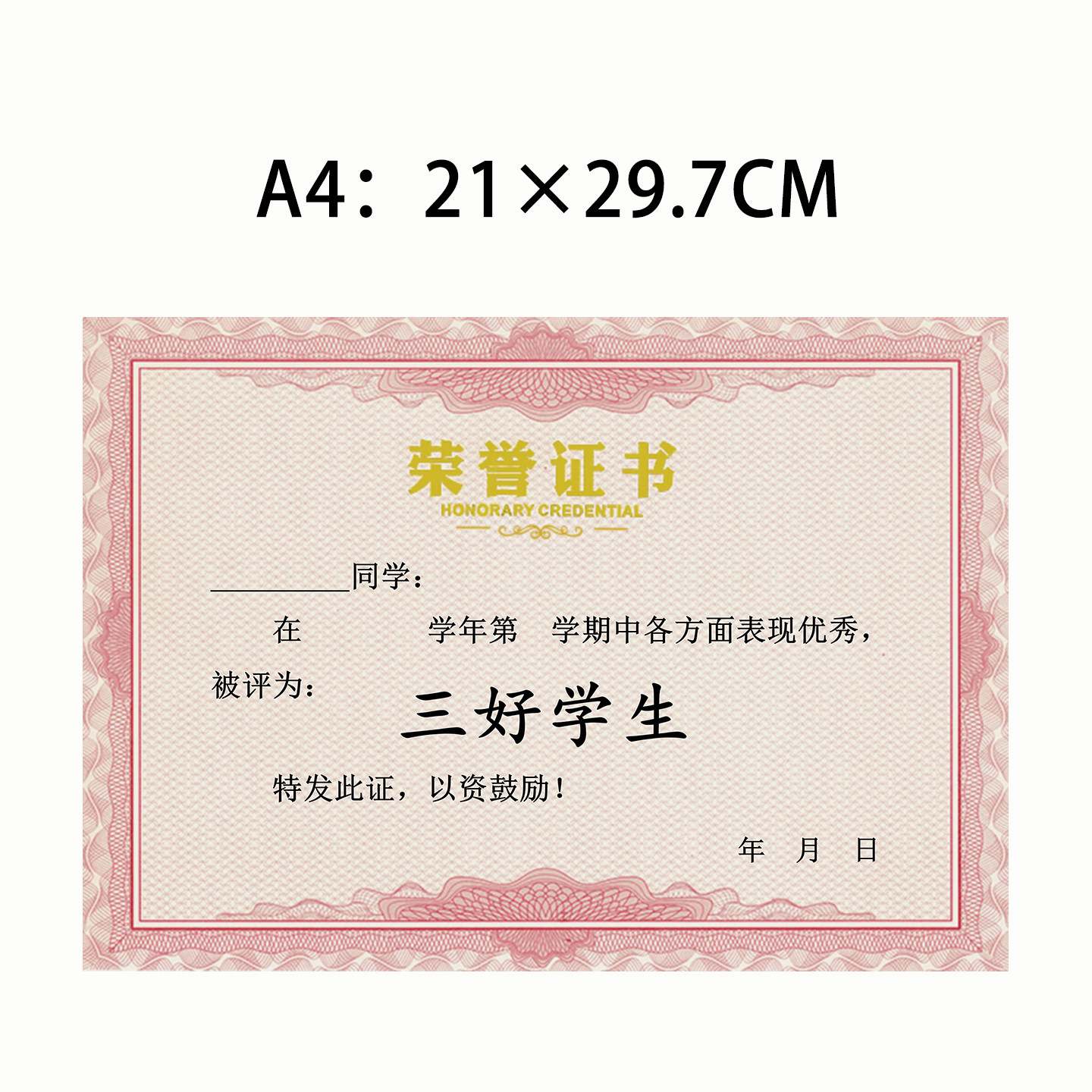 荣誉证书内芯加厚奖励用三好学生定制加厚荣誉a4可打印学生纸张A4