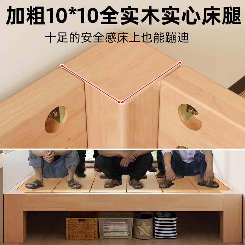 全实木无床头床架榫卯静音悬浮床小户型齐边排骨架床架可定制尺寸