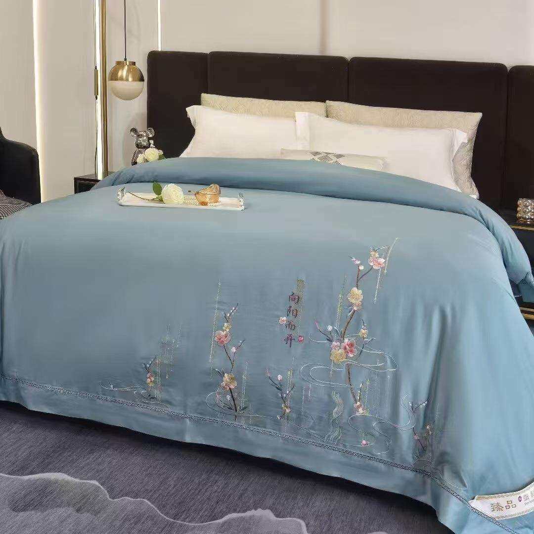 高端轻奢80s长绒棉镂空纯棉苏绣工艺蚕丝被壳加密防钻丝厂家