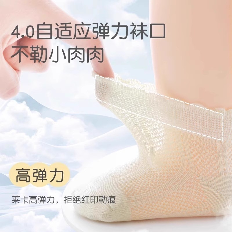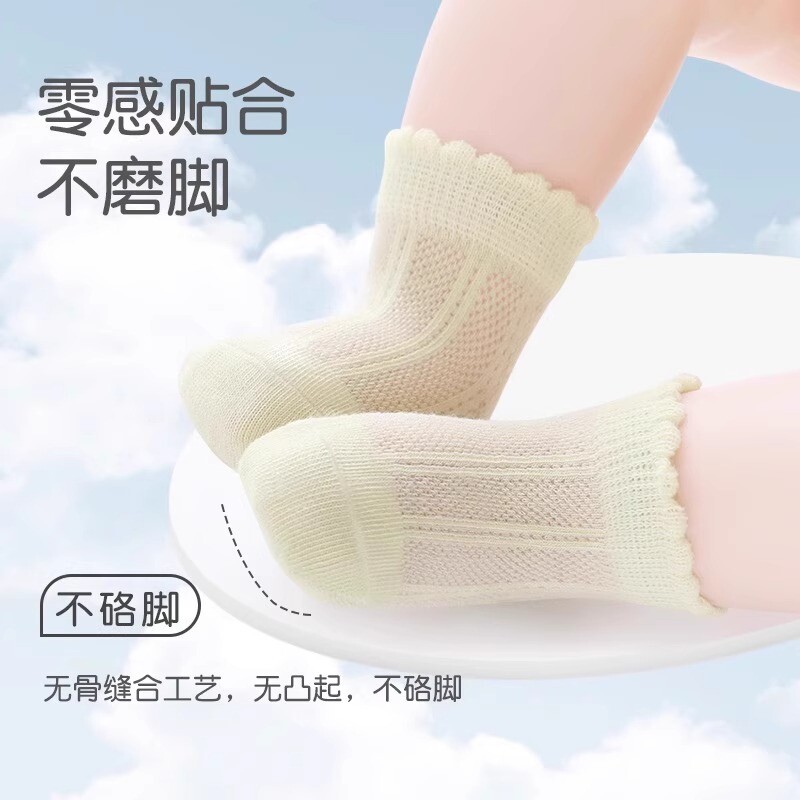 婴儿袜子夏季薄款宝宝透气网眼纯棉无骨男女短袜女宝宝男宝宝防滑