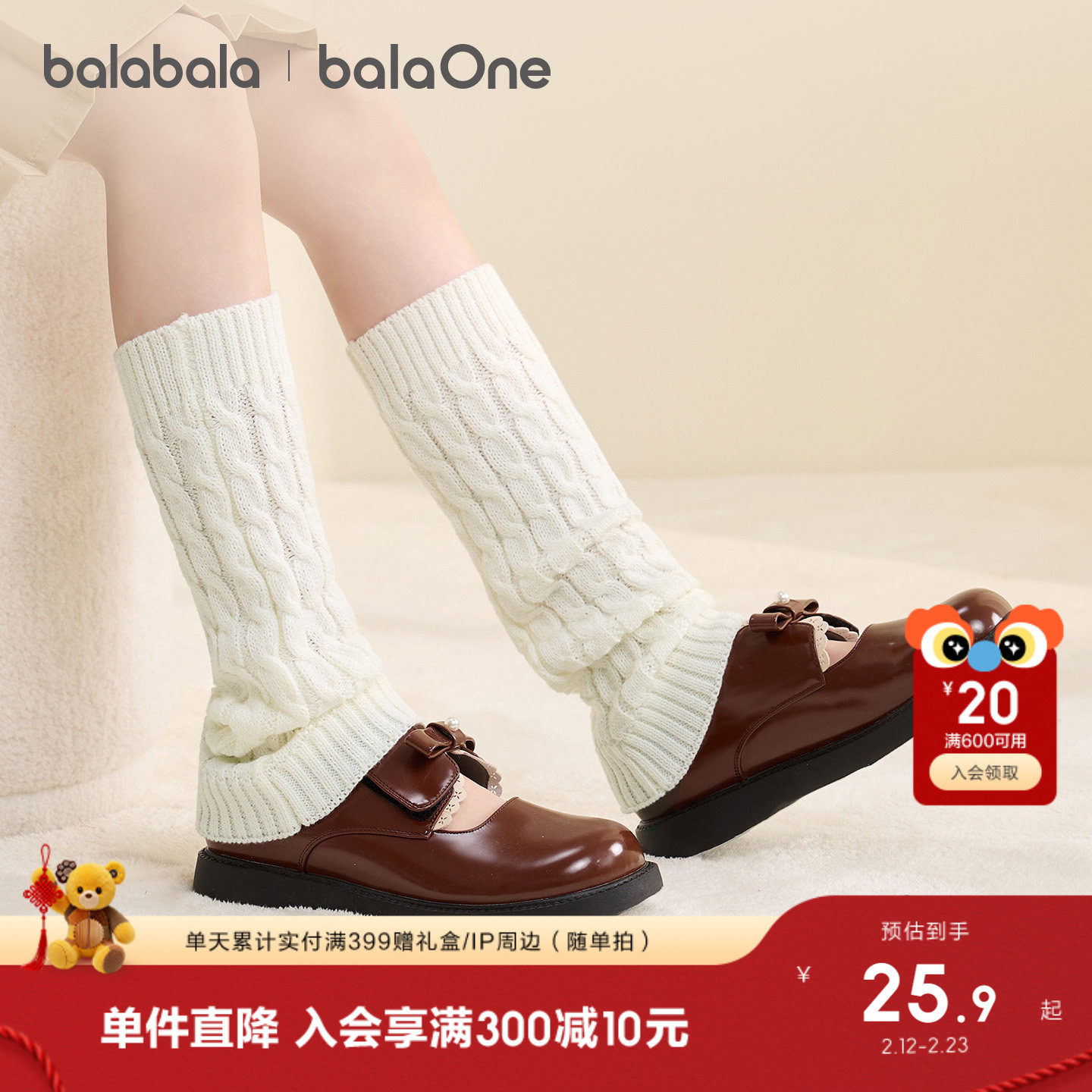 【balaOne】巴拉巴拉儿童袜子秋冬女童袜套中大童含羊毛堆堆袜套