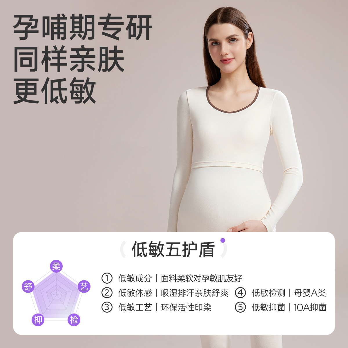 英氏孕妇秋衣裤套装秋冬新款保暖内衣产后哺乳睡衣透气舒适月子服