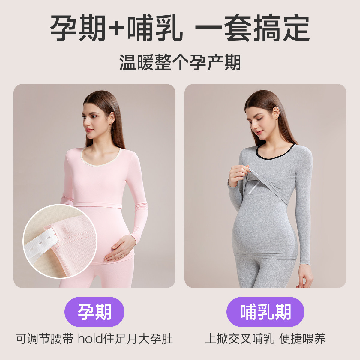婧麒孕妇秋衣秋裤套装保暖内衣孕期打底产后哺乳喂奶大码月子服冬