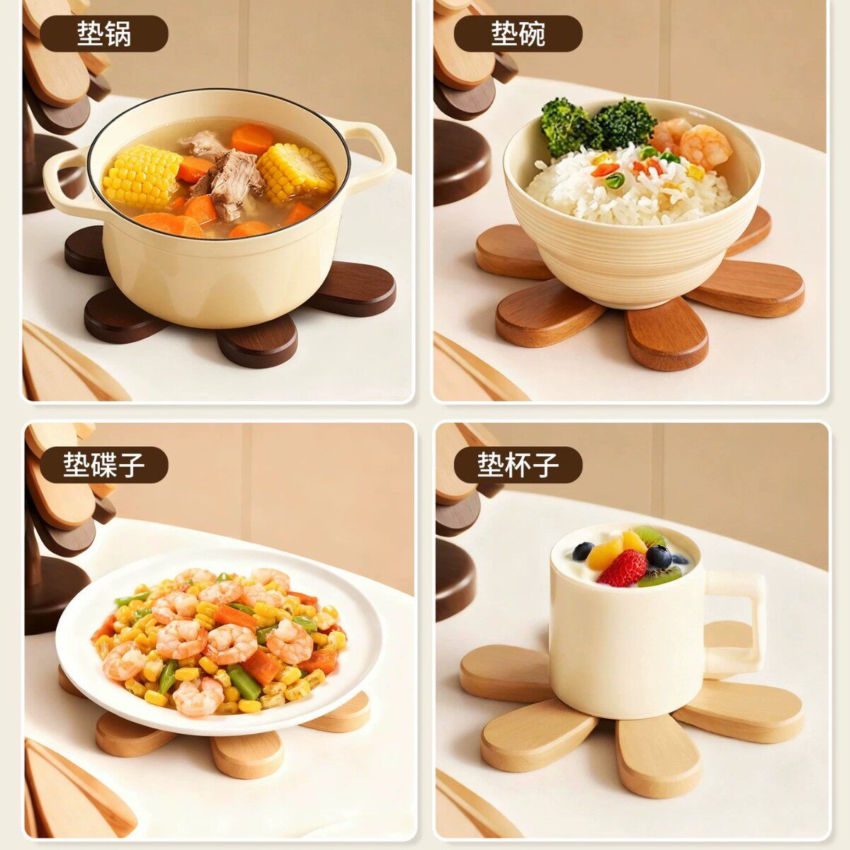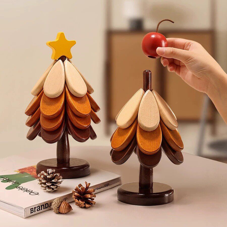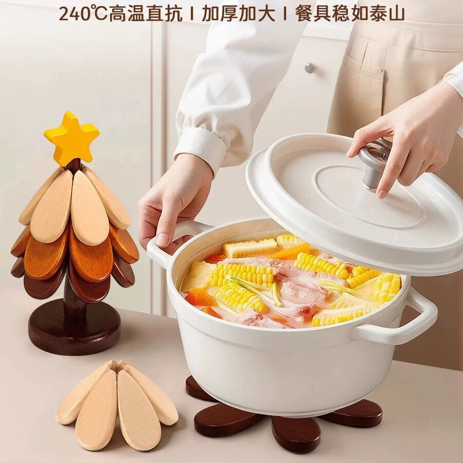 圣诞树隔热垫新房婚房乔迁家具餐桌摆件实木锅垫折叠杯垫防烫垫