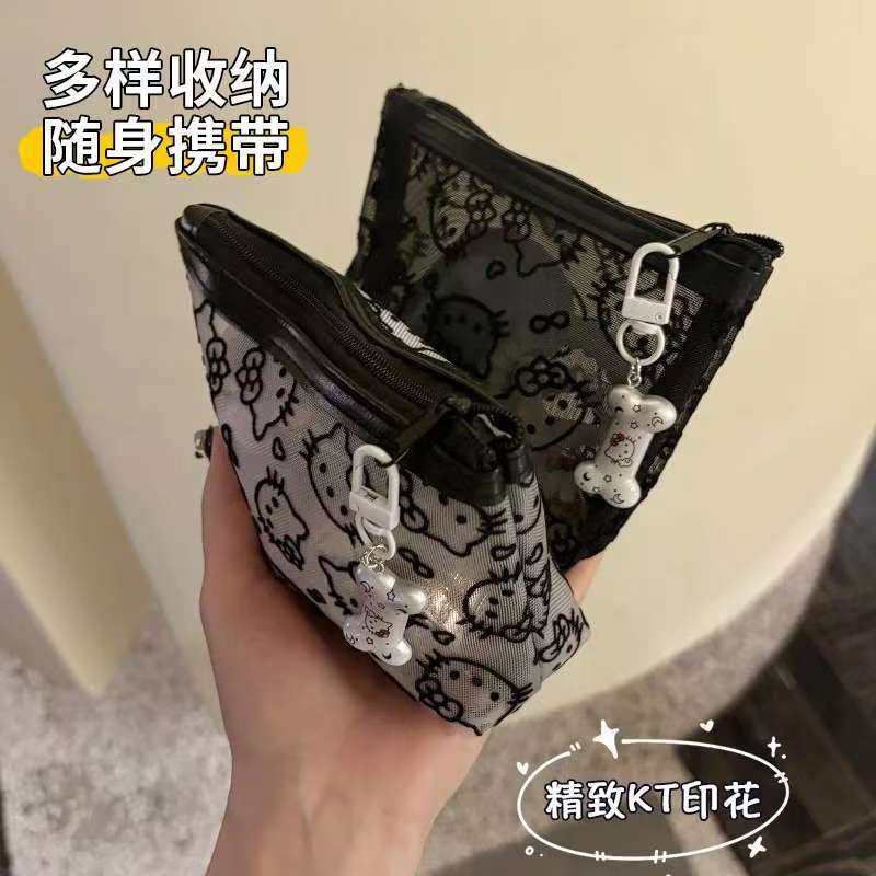 可爱kitty猫网纱化妆包透明手拿便携外出旅行收纳包随身简约包女