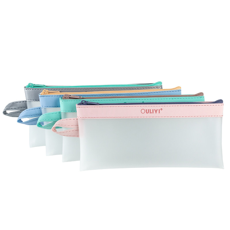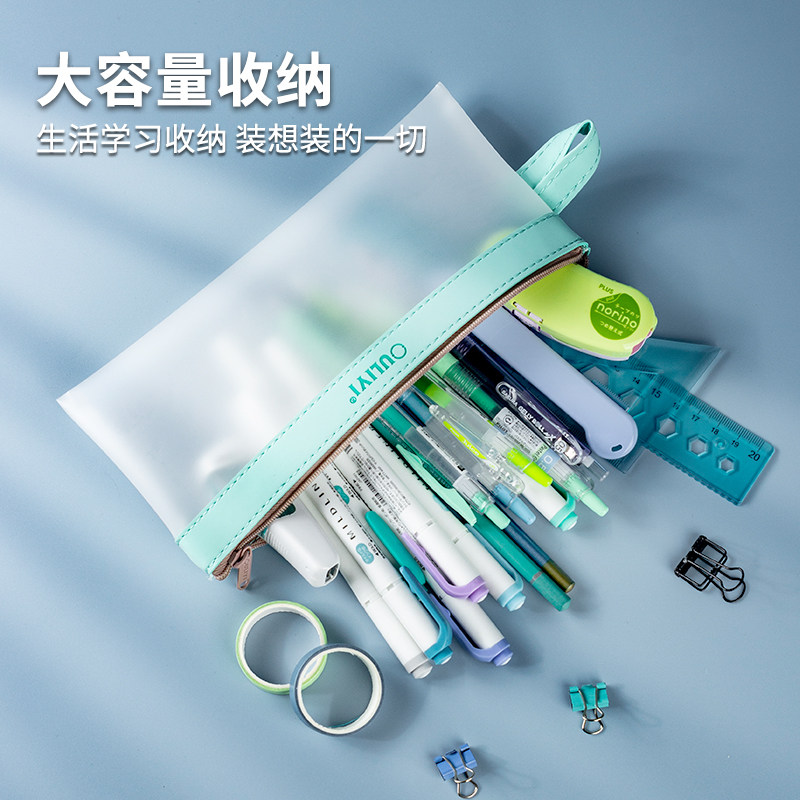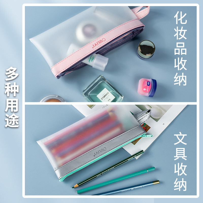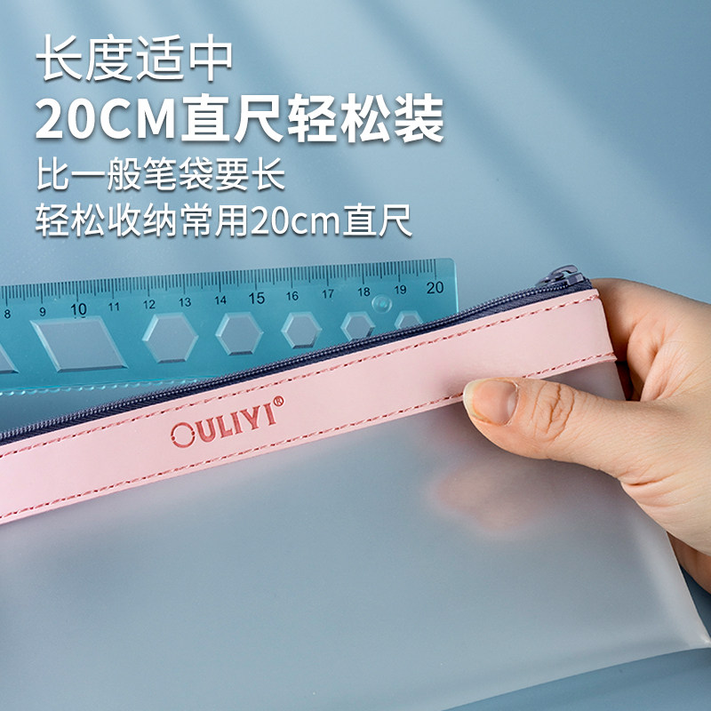 欧力益透明笔袋ins日系简约新款便携中学生考试专用高颜值文具袋防水耐脏女孩小学生拉链式大容量铅笔盒定制