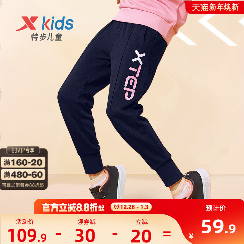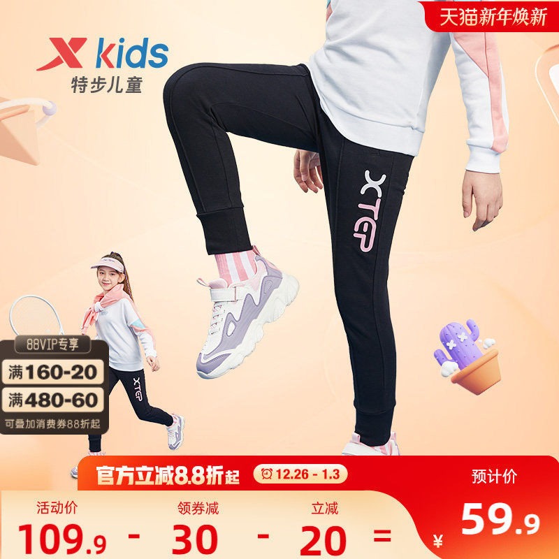 特步童装女童裤子2025秋冬新款冬装儿童长裤大童加绒裤卫裤运动裤