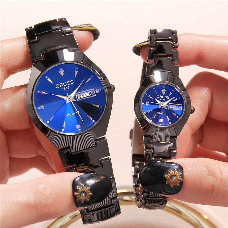 男士钢带石英手表商务夜光防水男表双日历休闲男女情侣腕表批发