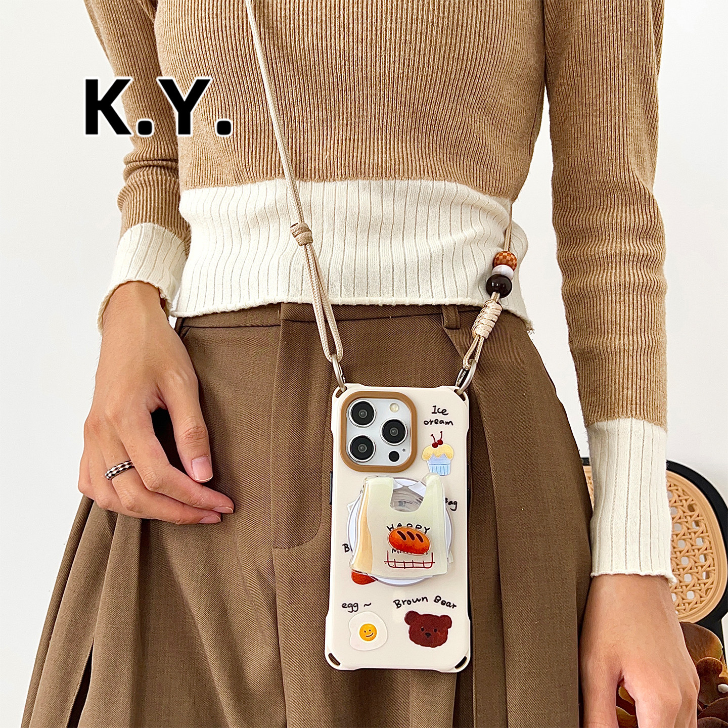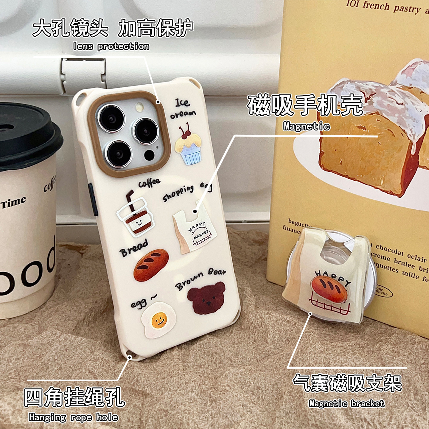面包磁吸支架手机壳带挂绳适用于苹果16PROMAXFINDX8四角开孔mate60pro斜挎背带PURA80ULTRA手提手腕15保护套
