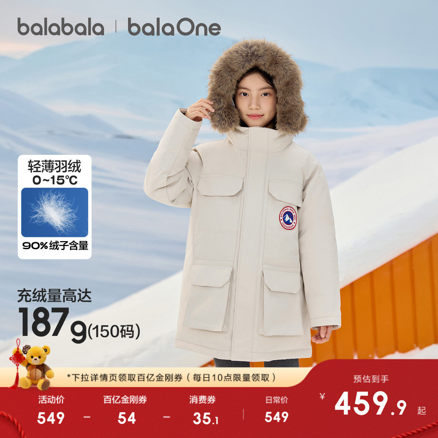 巴拉巴拉童装儿童羽绒服男女童冬装中长款毛领加厚2025年新款外套