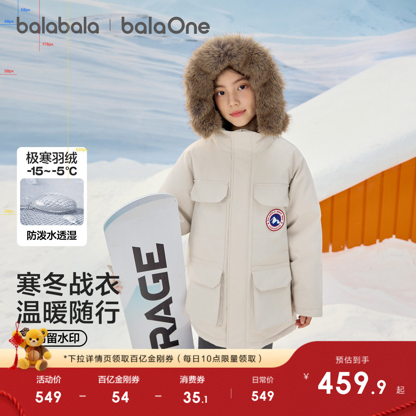 巴拉巴拉童装女童羽绒服宝宝儿童秋冬外套男童马甲中童时尚潮反季