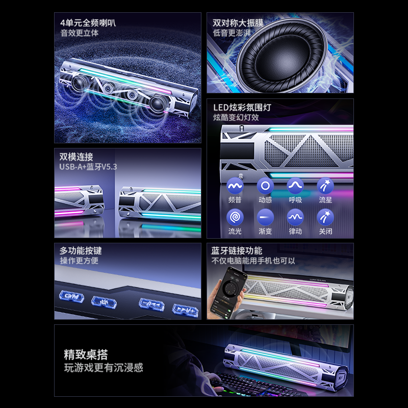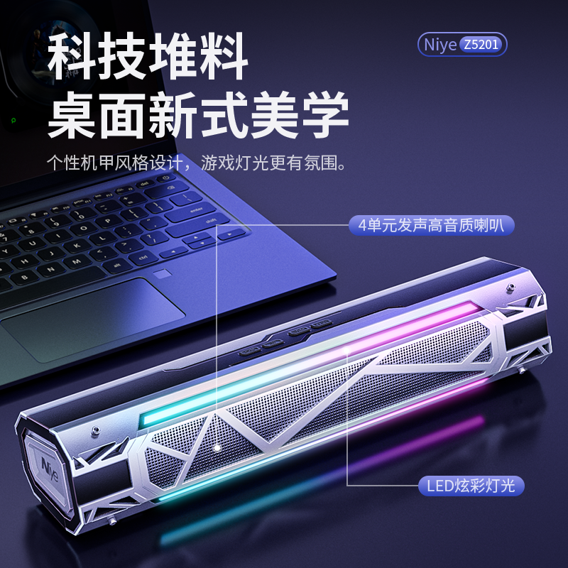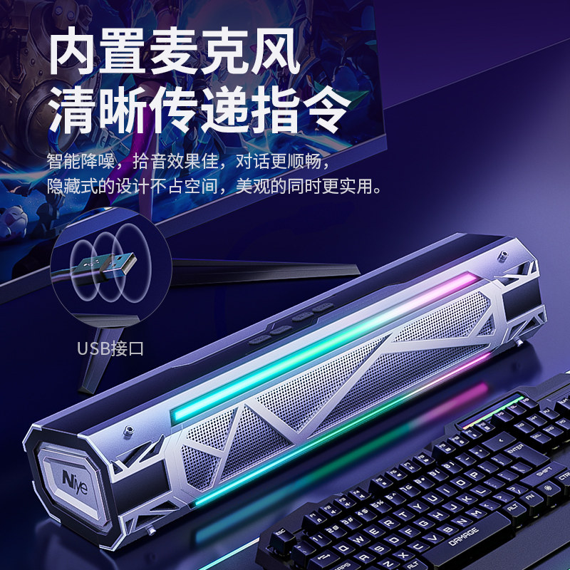 电脑音箱台式桌面多媒体长条蓝牙音响高音质赛博朋克机械电竞必备