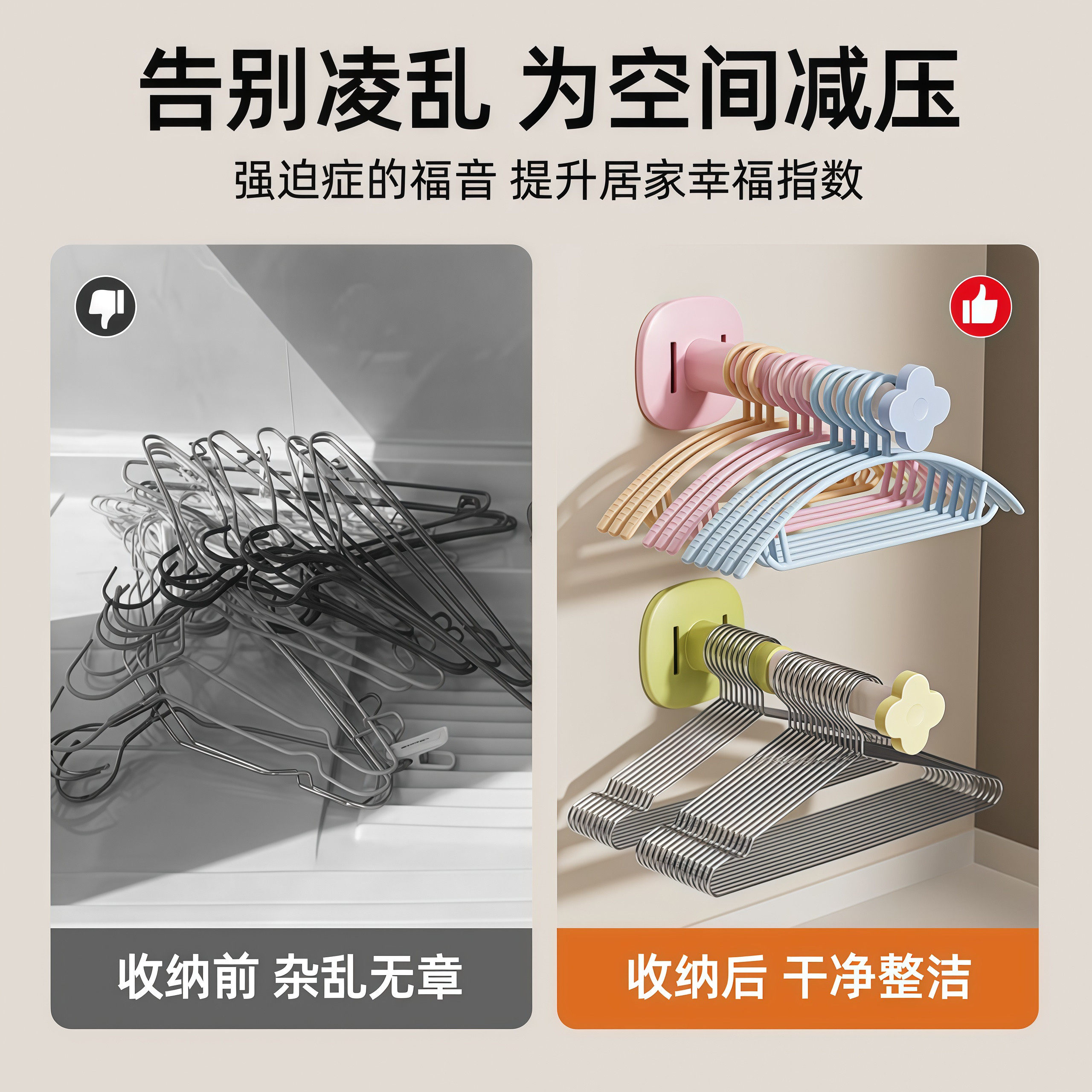 免打孔衣架收纳神器多功能可伸缩整理架阳台壁挂家用晾衣架收纳架