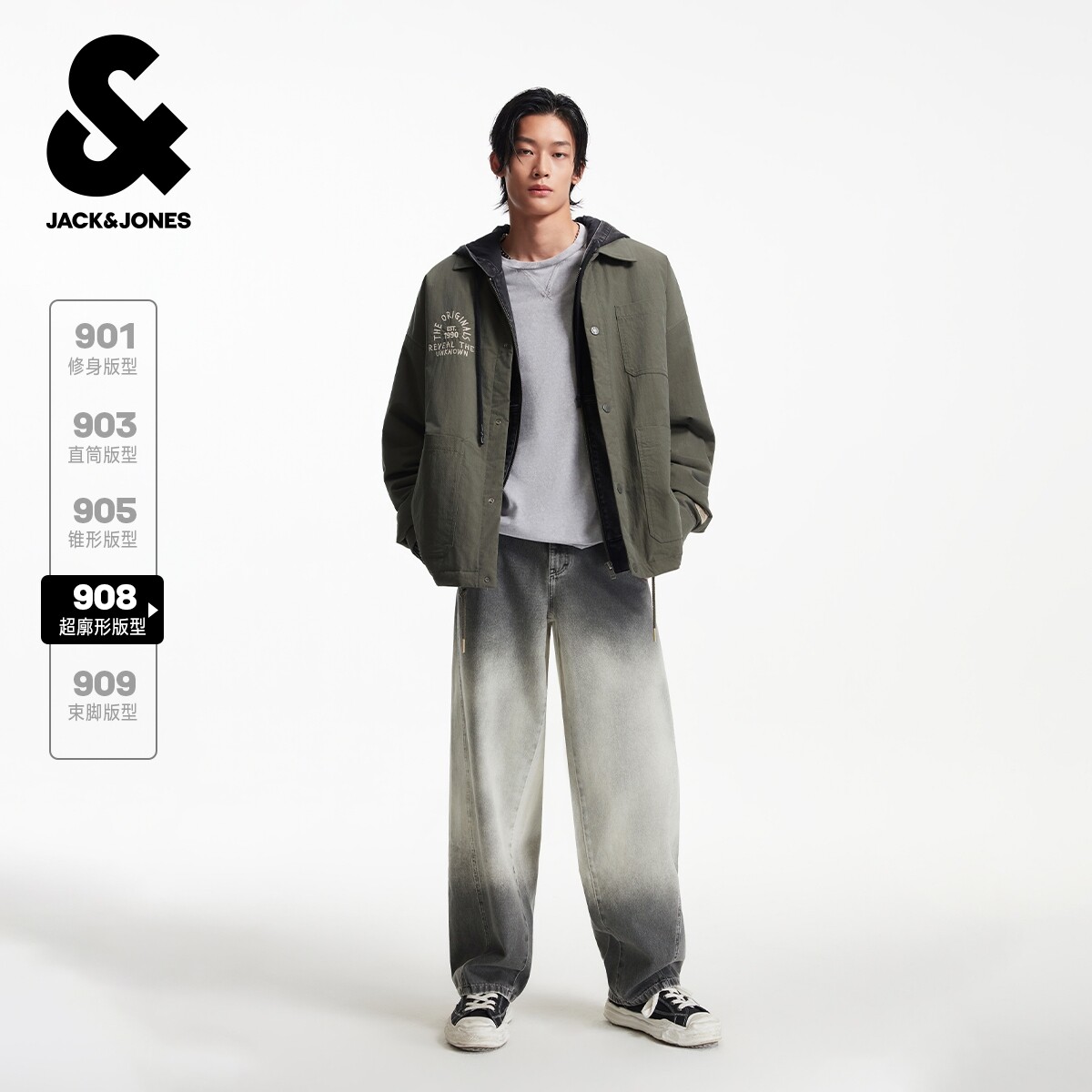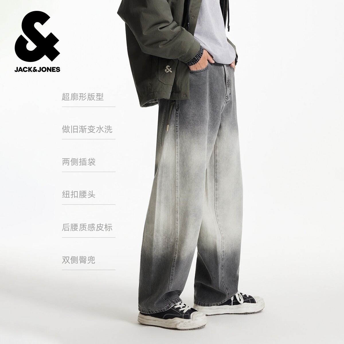 杰克琼斯男装牛仔裤春季廓形2026年潮流宽松渐变水洗百搭长裤裤子