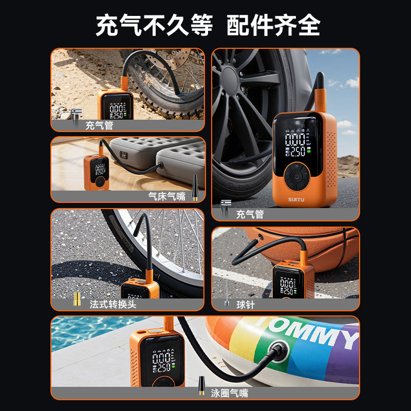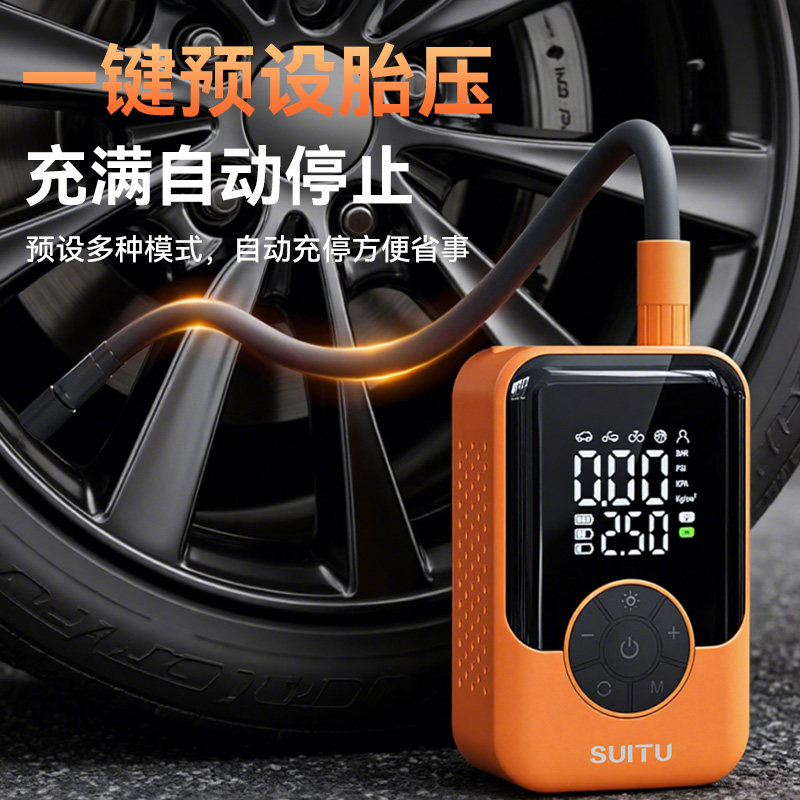 名创优品小车载充气泵便携式轮胎电动车自行车打气泵无线电动胎压