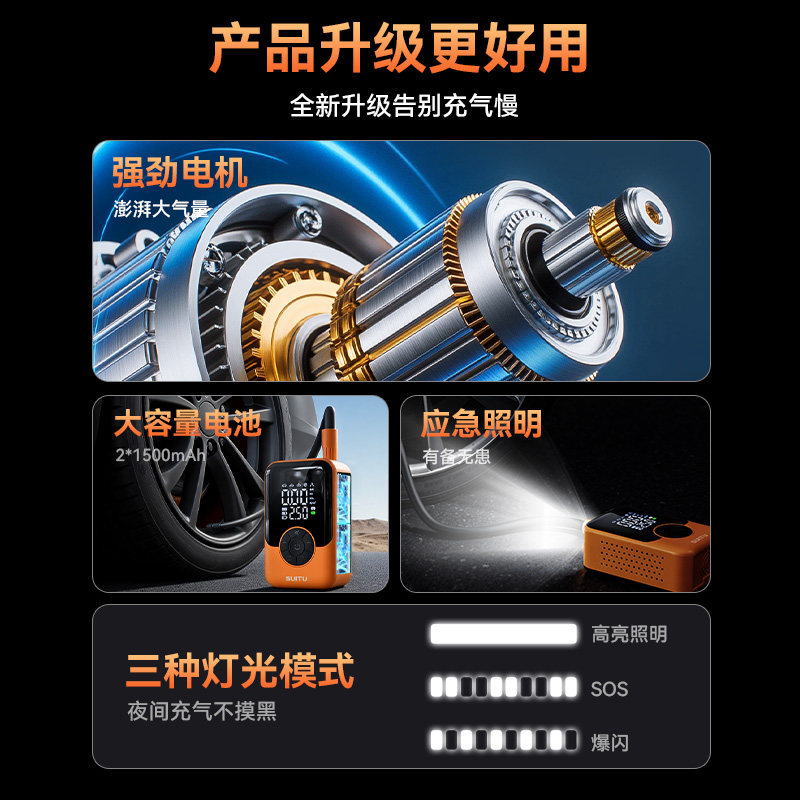 凌匠多功能SUV车载充气泵双缸高压大功率电动汽车用轮胎打气泵12V