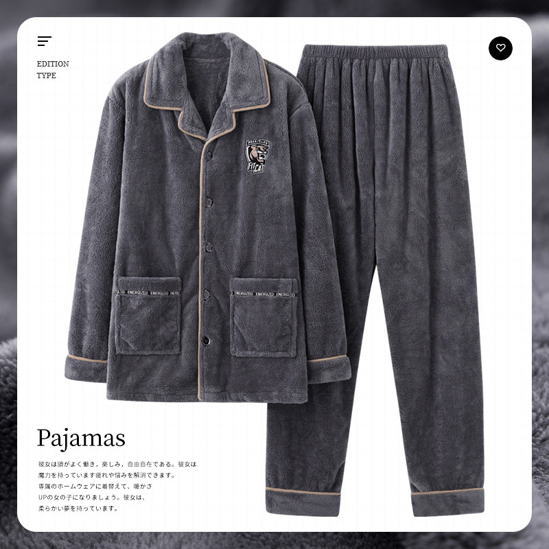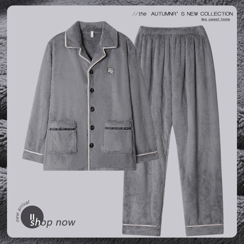 新款珊瑚绒睡衣男士秋冬款加厚套装加绒法兰绒男款冬季家居服大码