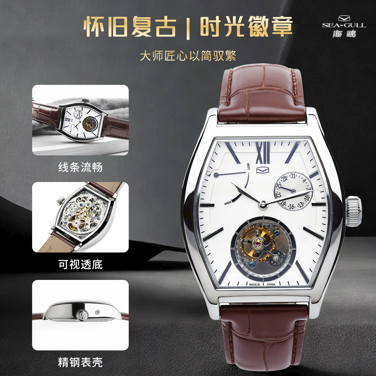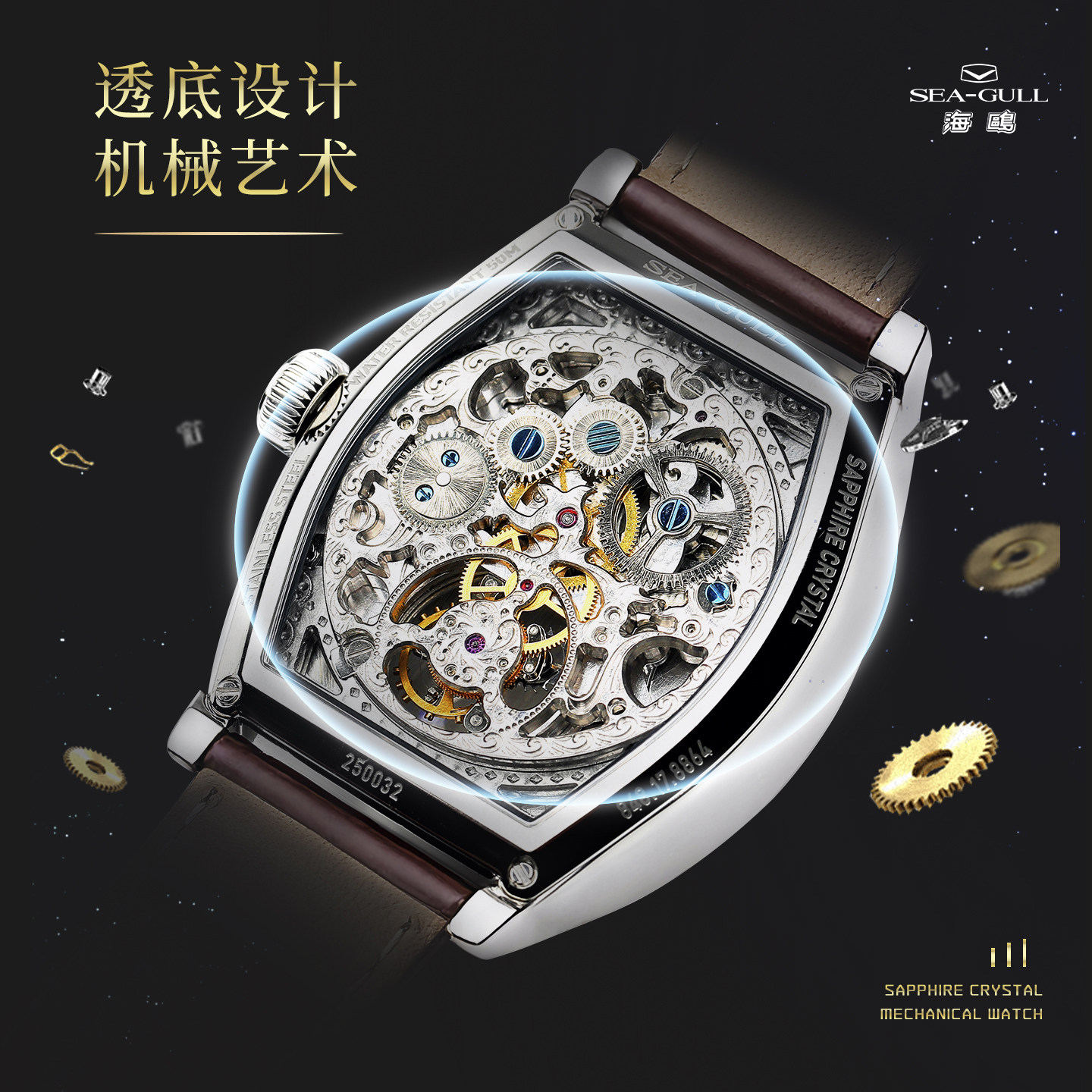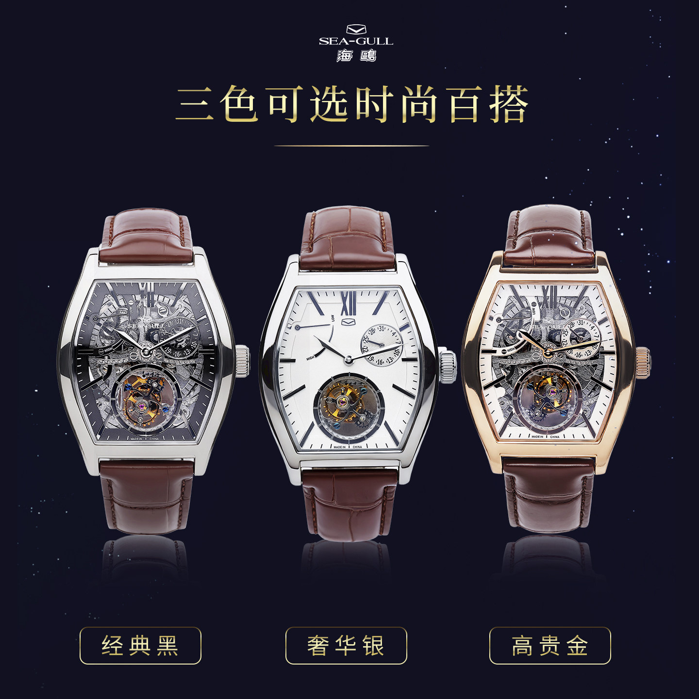 海鸥表镂空陀飞轮酒桶型机械表陀高端男表商务手表高级腕表8863K