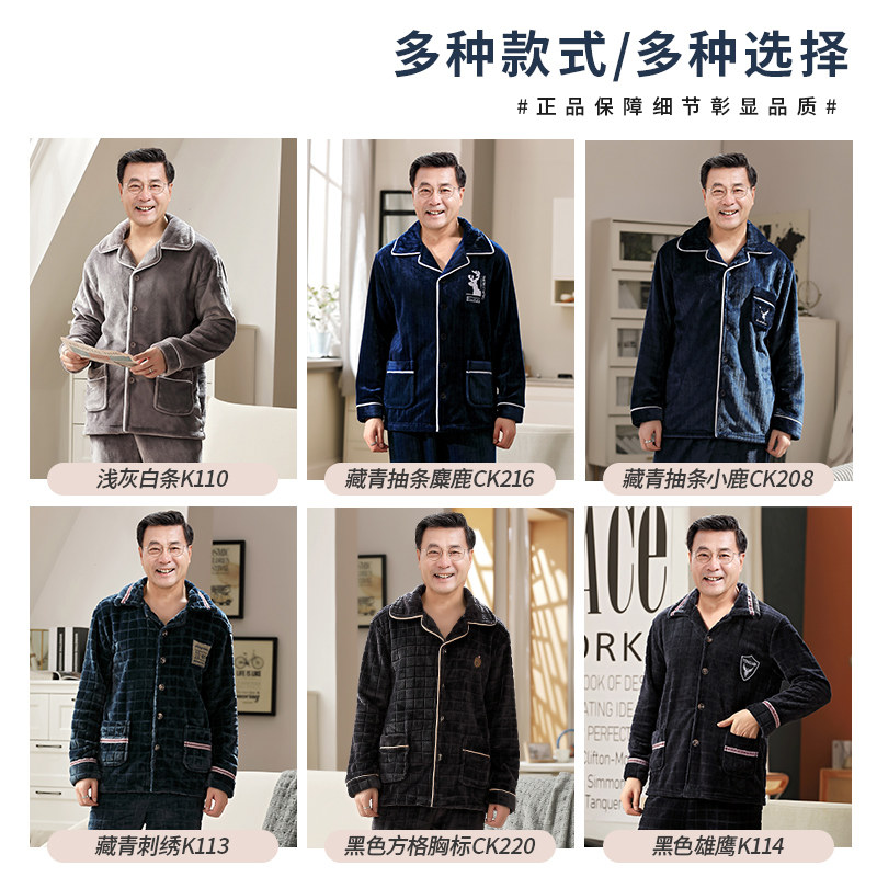 珊瑚绒睡衣男款冬季加绒加厚中年老年人爸爸法兰绒男士家居服套装