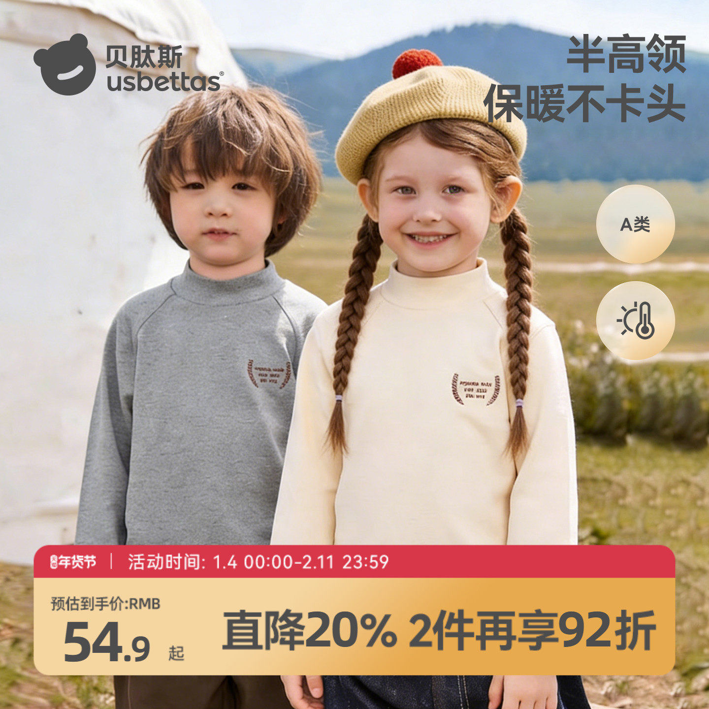 贝肽斯儿童打底衫秋冬宝宝纯棉a类半高领内搭男童秋衣上衣单件S