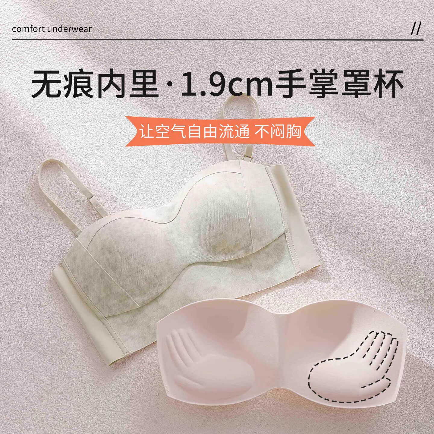 草本初色内衣女细肩带无痕夏季薄款大胸显小胸聚拢凉感无钢圈文胸