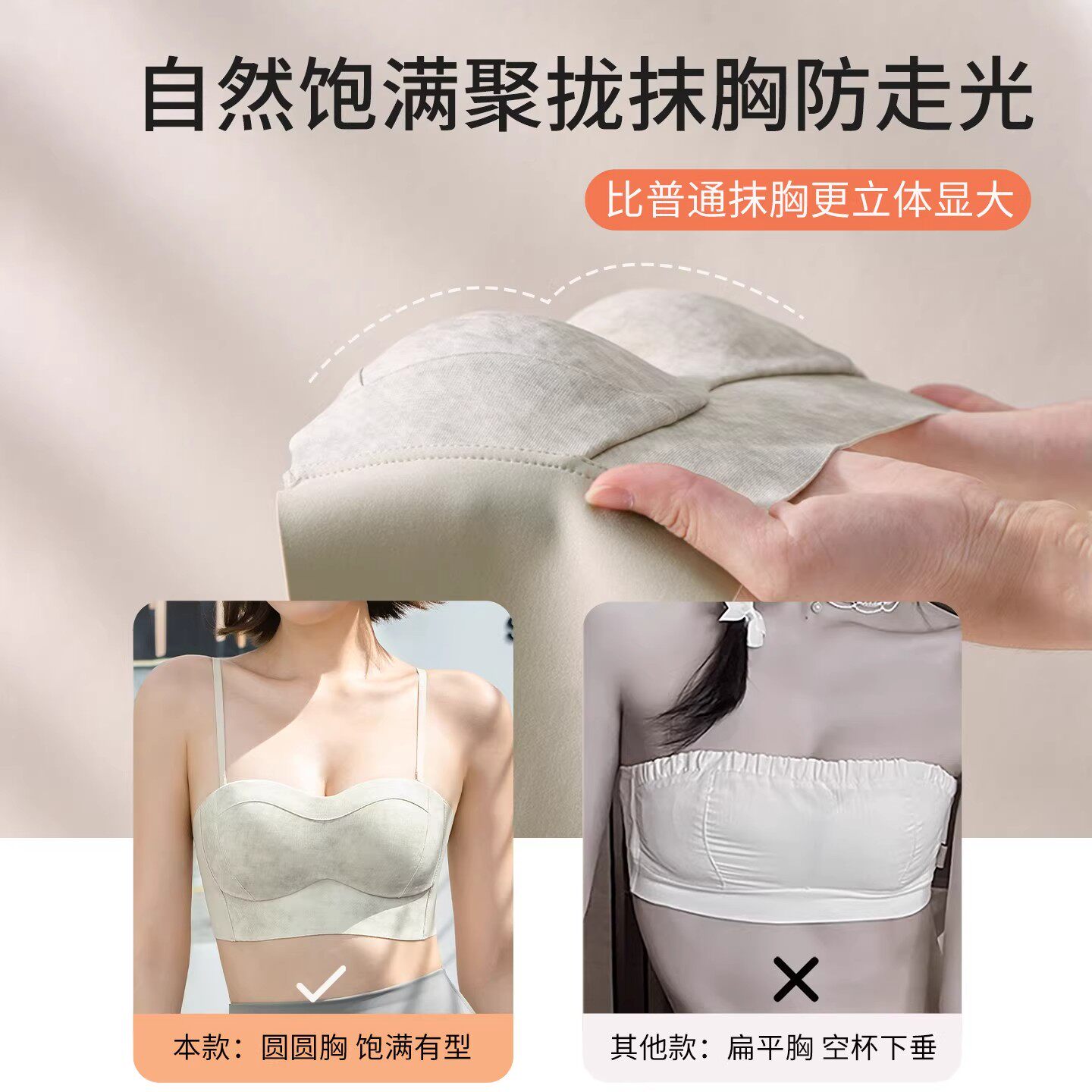 无痕抹胸式内衣女小胸聚拢手掌杯上托裹胸两穿文胸罩防走光透气