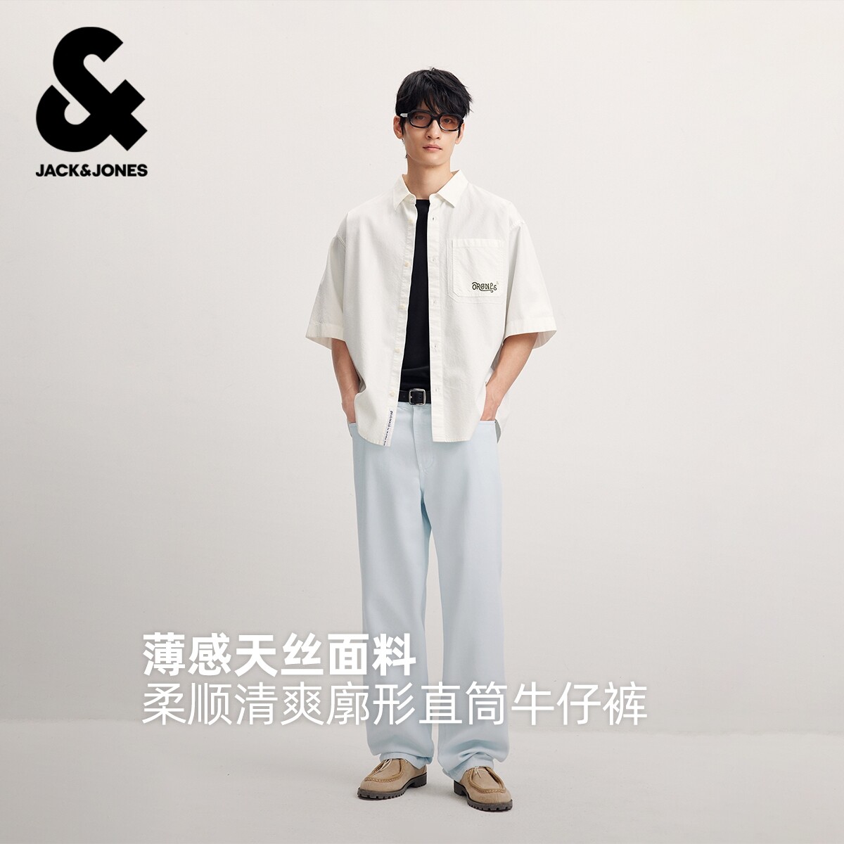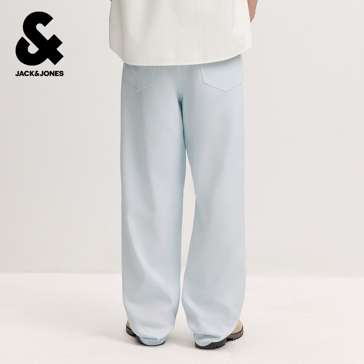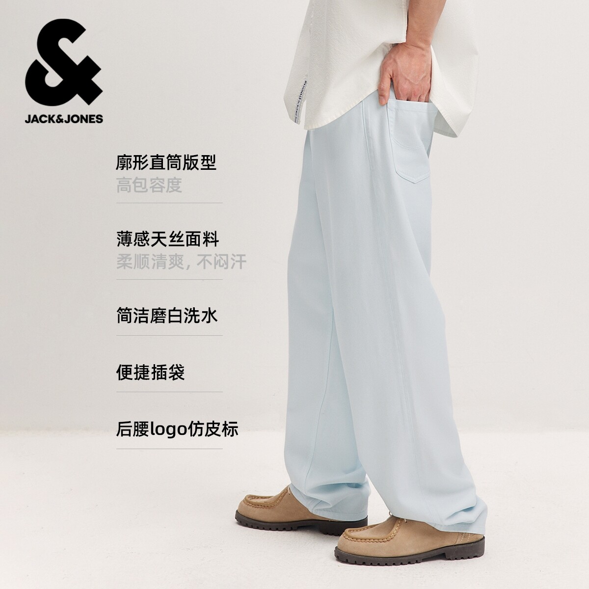 杰克琼斯奥特莱斯男装牛仔裤春秋新款水洗磨白舒适天丝廓形长裤子