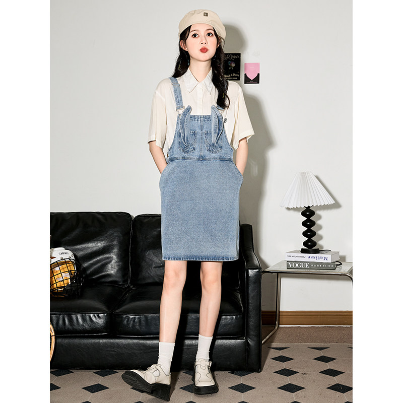 唐狮兔耳朵牛仔背带连衣裙新款女夏季学生小个子宽松显瘦裙子TA