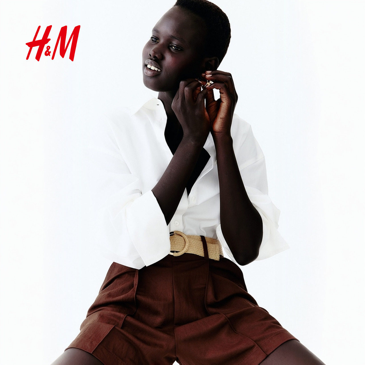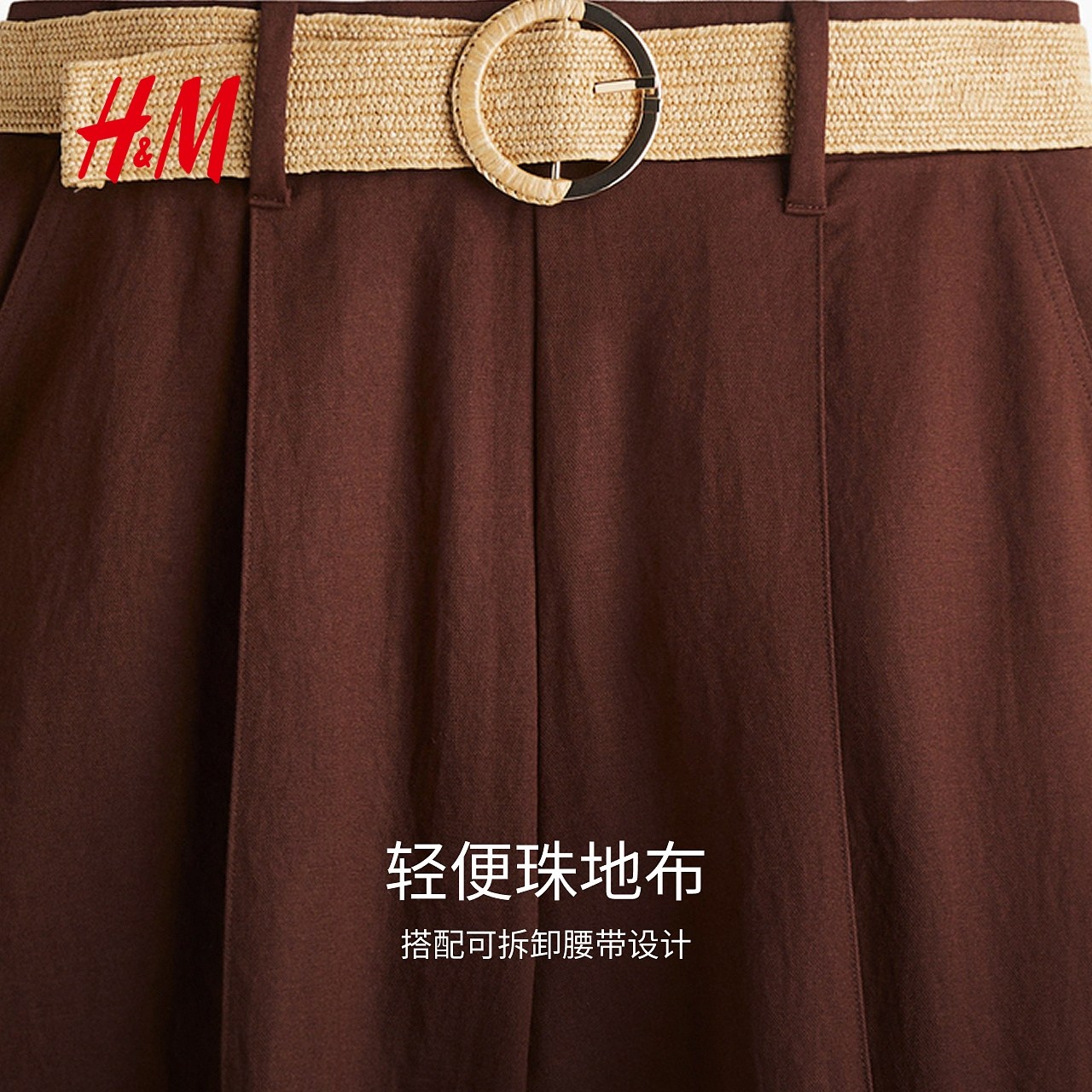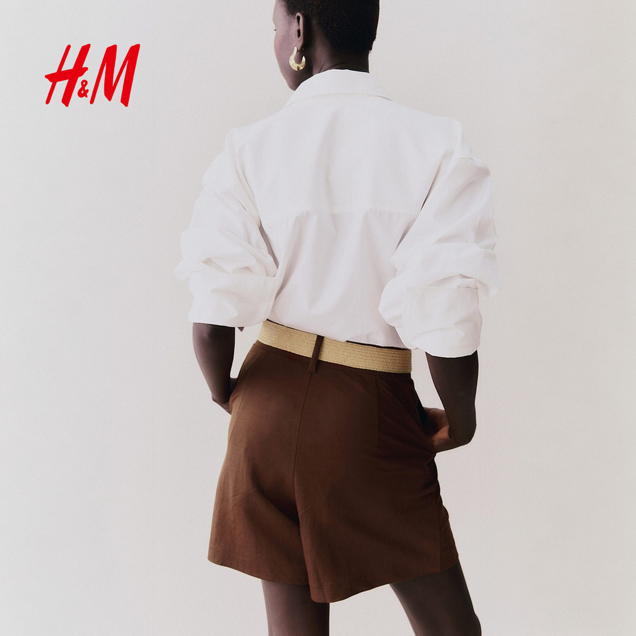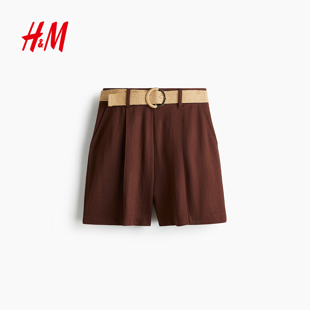 HM女士休闲裤2025年冬季新款配腰带珠地布短裤1295126
