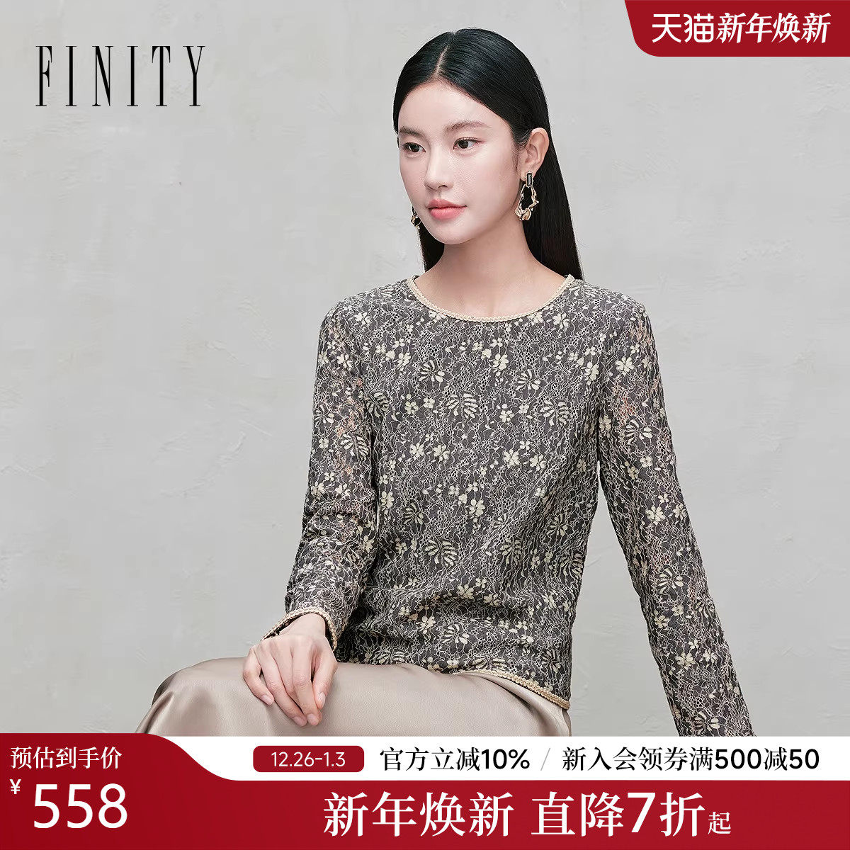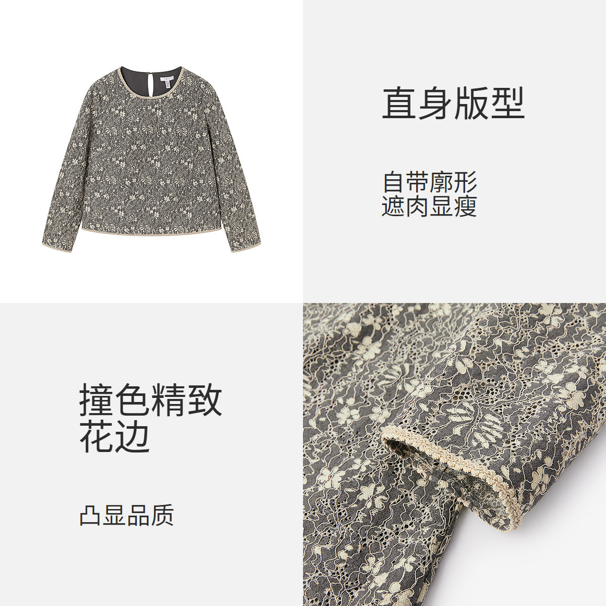 FINITY菲妮迪雪纺衫2025年秋季新款简约精致绣花撞色花边上衣女