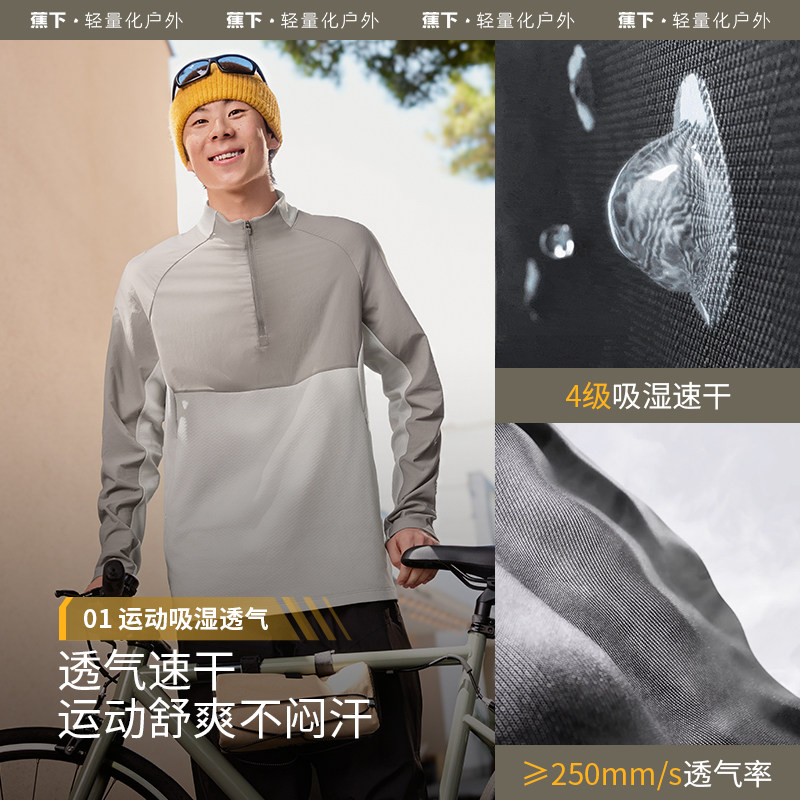 蕉下半拉链训练健身衣运动骑行服 跑步卫衣打底排汗速干长袖T恤男