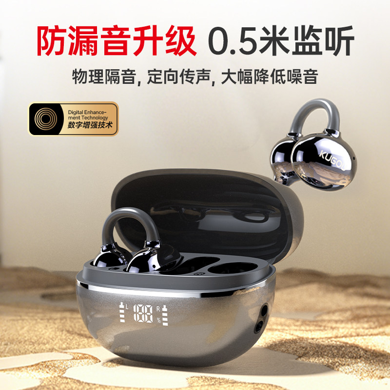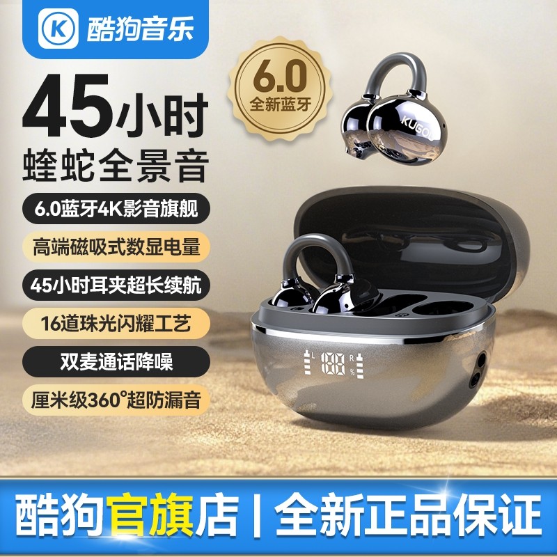 酷狗6.0蓝牙耳机耳夹无线开放式运动长续航气骨传导2025新款KG300