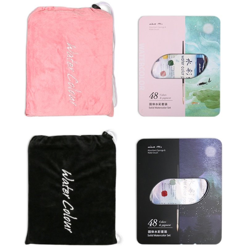 固体水彩颜套装学生美术写生初学者水粉颜料粉饼铁盒装水彩画笔