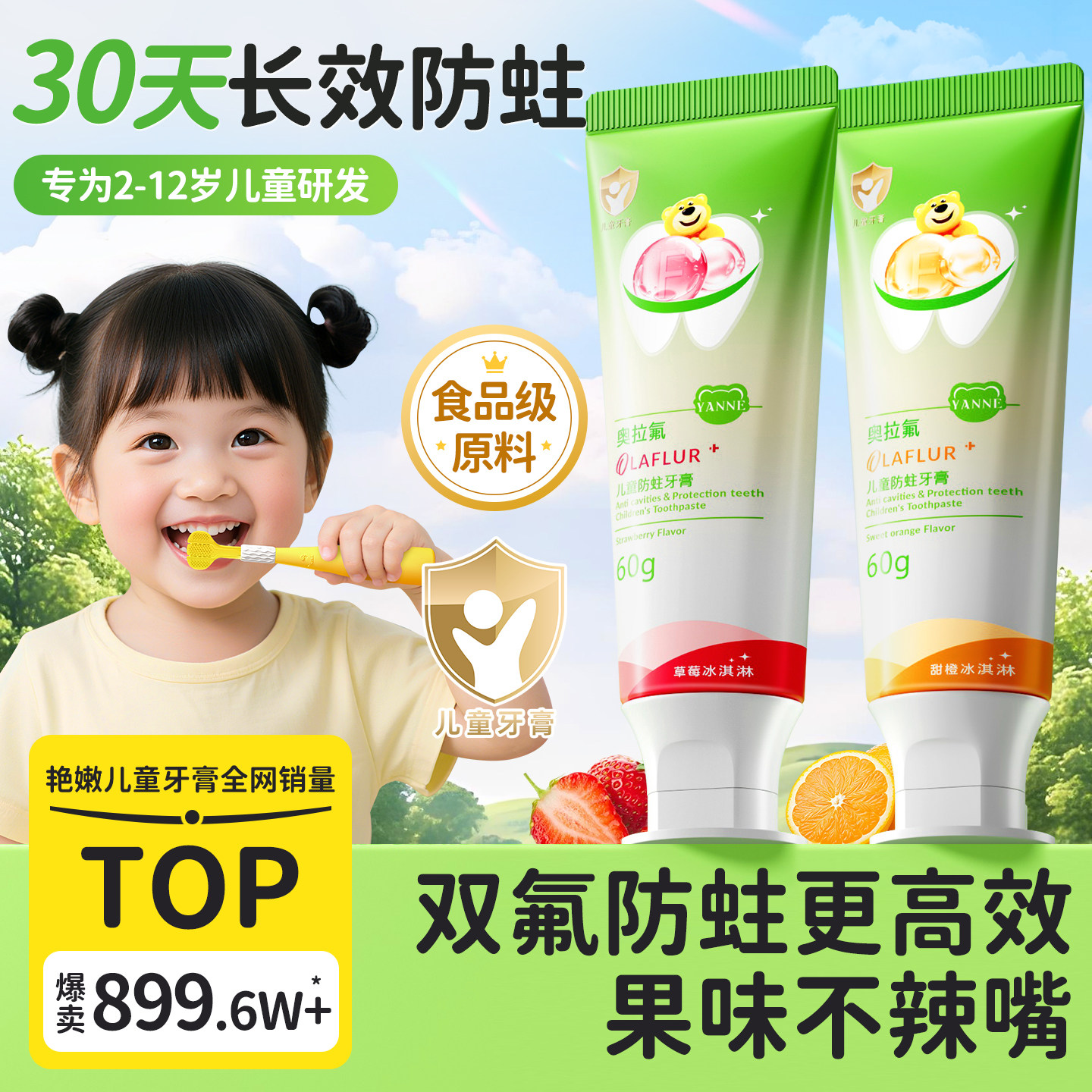 儿童牙膏3到6到12岁含氟换牙期奥拉氟抗糖防蛀固齿宝宝专用正品