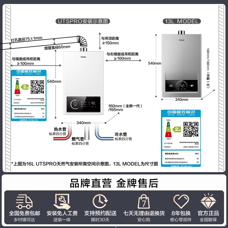 海尔燃气热水器智能家用天然气煤气液化气强排式13/16L恒温UTSPRO