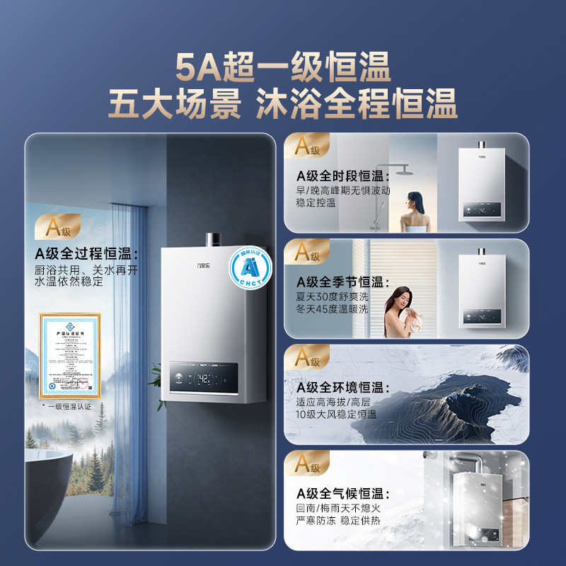 万家乐安睡洗燃气热水器1级恒温节能16升静音家用天然气TS6/P3PRO