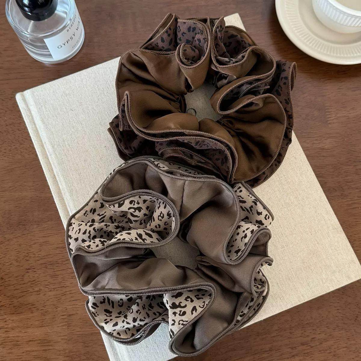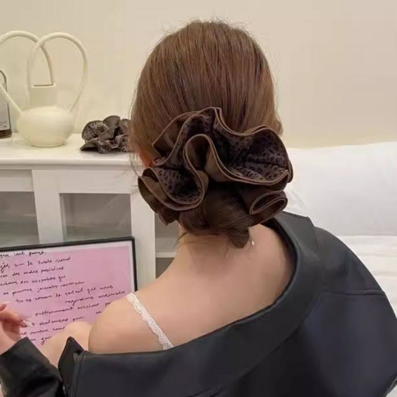豹纹发圈大肠缎面大号时尚高级感丸子头发绳马尾扎头发头绳女长发