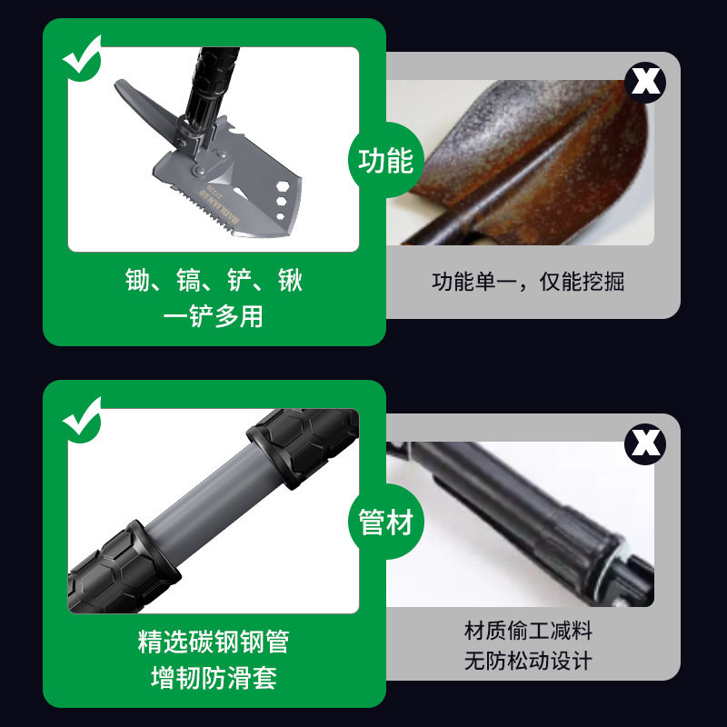 德国锰钢户外多功能工兵铲斧头套装折叠车载野营工具钓鱼探险装备