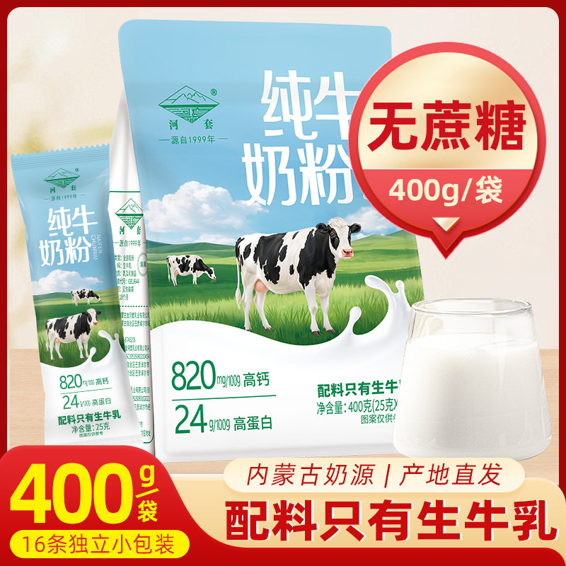 内蒙古河套纯牛奶粉成人高钙中老年人无蔗糖无添加学生儿童袋装