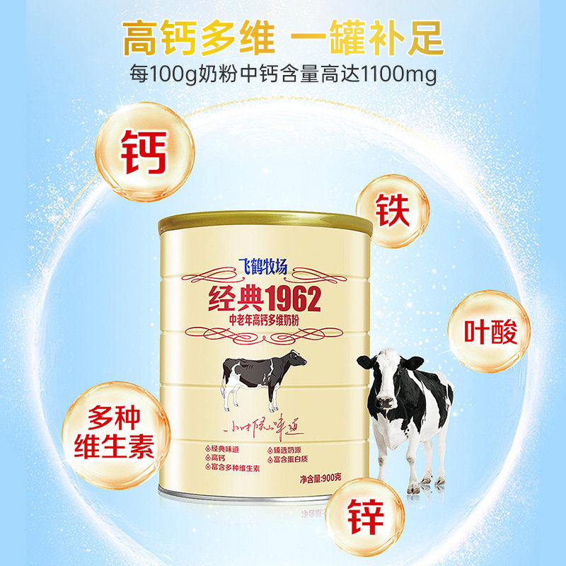 飞鹤牧场经典1962中老年多维高钙奶粉成人900g牛奶粉礼品袋装年货