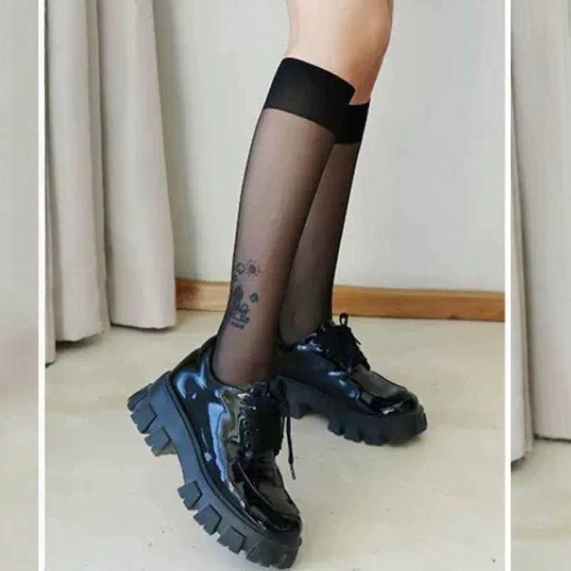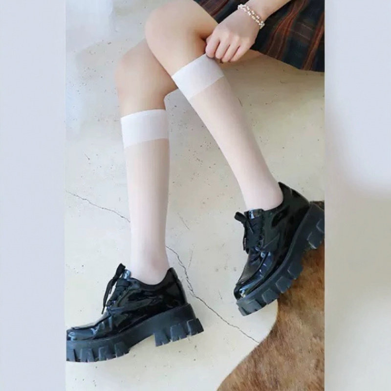 小腿袜性感黑丝袜女防勾丝百搭jk中筒袜诱惑过膝透明日系ins薄款