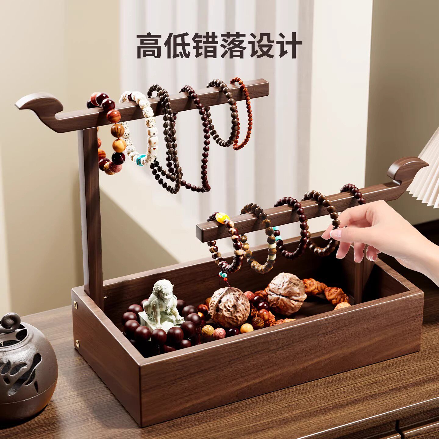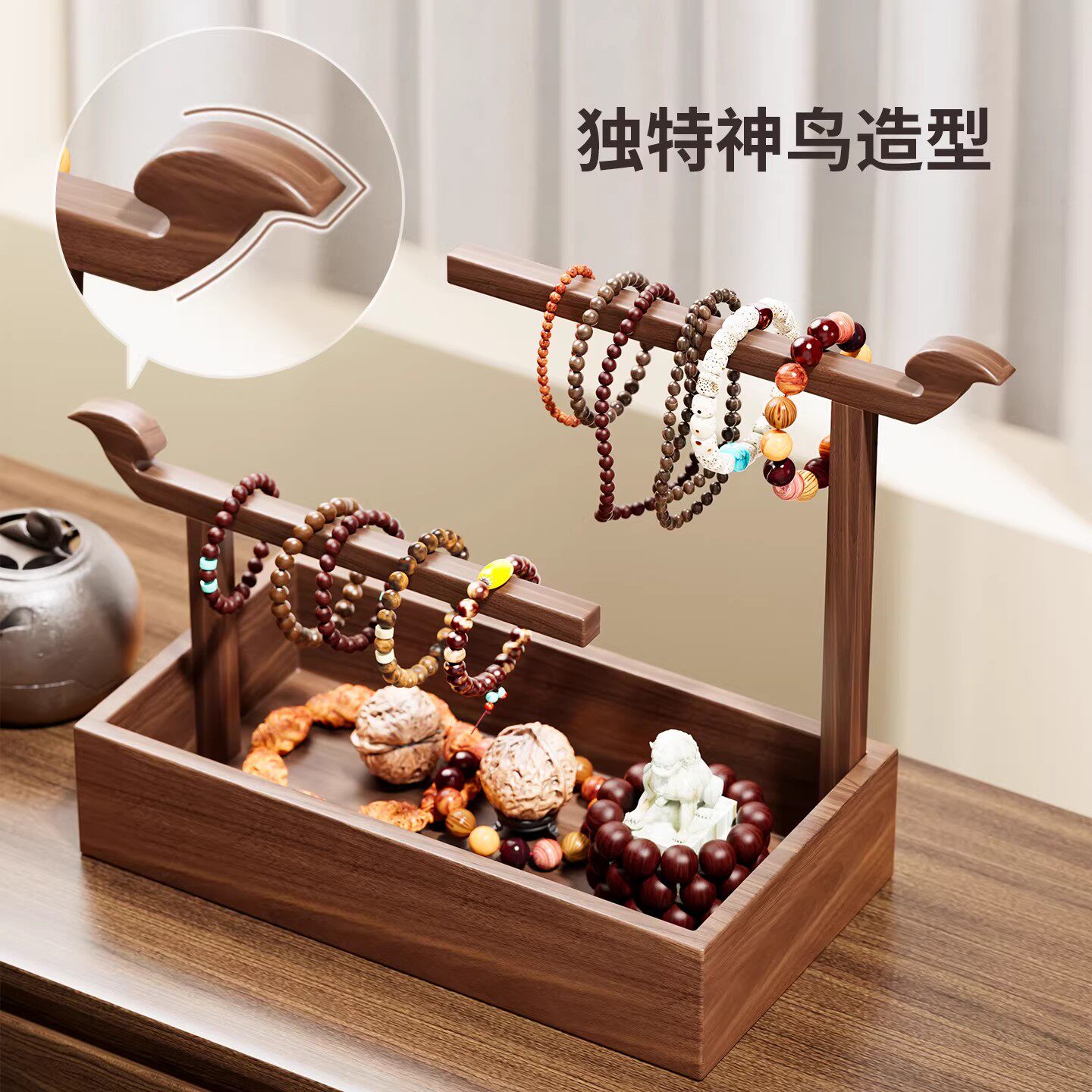 家用实木首饰架台面双杆大容量珠宝手镯架桌面开放轻奢高端展示架